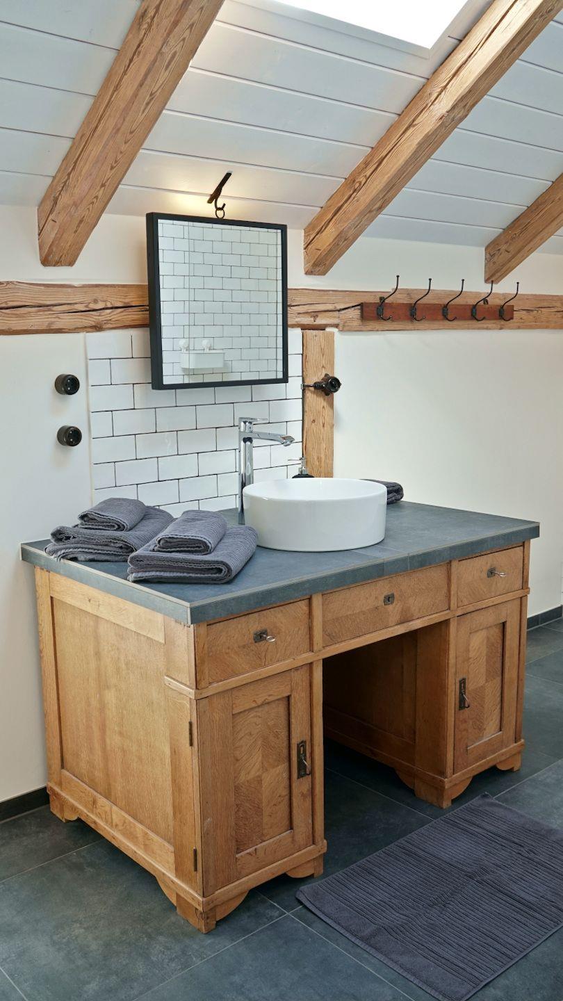 Sie befindet sich im Dachgeschoss des Hauses, der Zugang erfolgt über eine Metalltreppe an der rechten Seite der Scheune