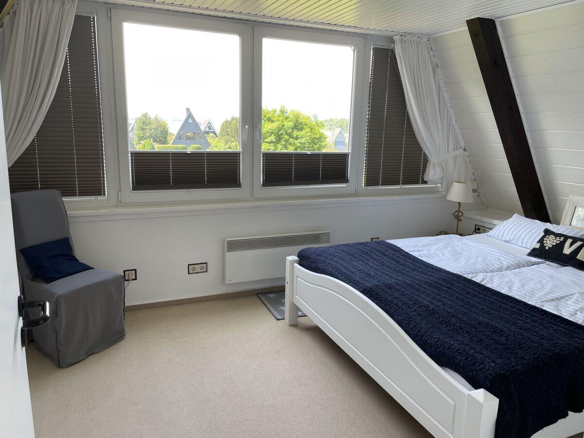 2 der oberen Schlafzimmer bieten einen herrlichen Blick auf die Schlei , wo man bei guten Wetter bis nach Schleswig gucken kann.