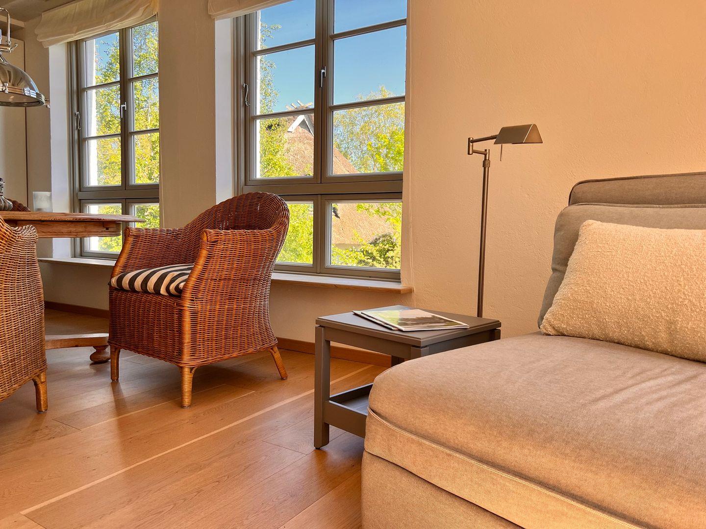 Erlebe erholsame Tage in unserer Ferienwohnung „Sommerby Sky“ mit großen Fenstern und Gartenblick. Die Wohnung im 1. Obergeschoss ist stilvoll eingerichtet. Die offene Küche ist voll ausgestattet. Ein modernes Duschbad und drei komfortable Schlafmöglichkeiten sorgen für Wohlbefinden. Ein helles Arbeitszimmer im 2. Obergeschoss sowie ein PKW-Stellplatz mit E-Ladesäule (ab Oktober 2024) sind vorhanden.