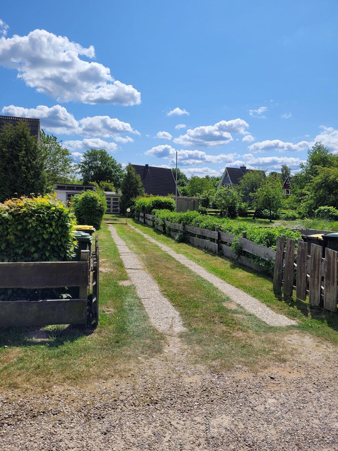 Neues Gartenhaus zum sicheren Unterstellen der Fahrräder. Weiteres Gartenhaus mit Sauna.