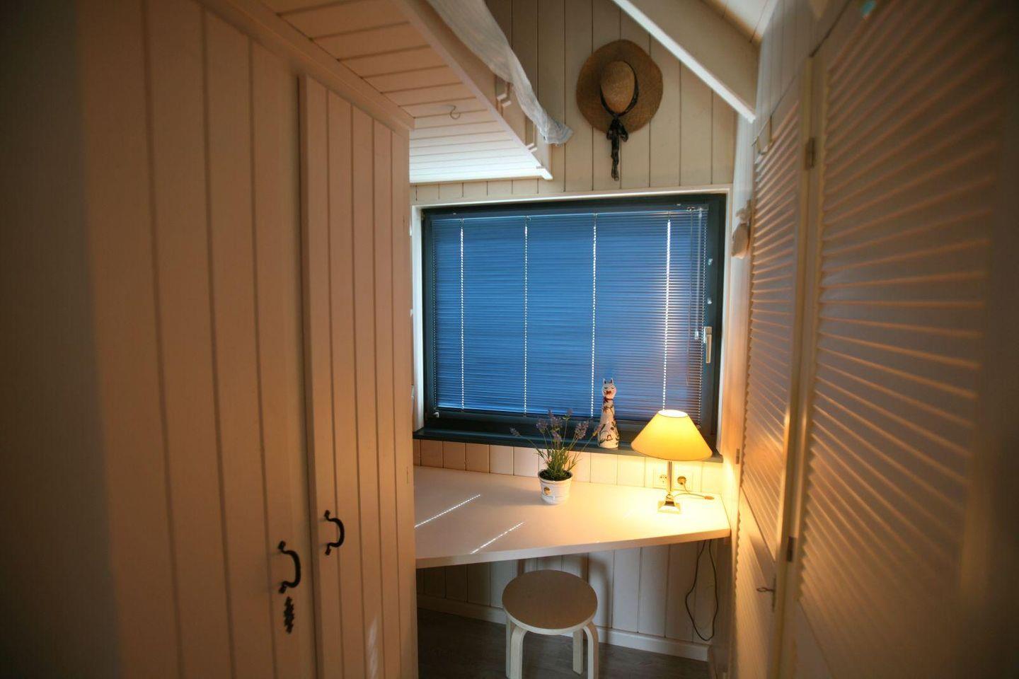 Neben einem Schlafzimmer im Erdgeschoss befinden sich zwei weitere Schlafzimmer im Obergeschoss. Hier hat man Zugang zum Westbalkon, von dem aus man spektakuläre Sonnenuntergänge beobachten kann. Von der großen verglasten Panoramafront im Giebelzimmer hat man freien Blick in den Garten. In diesem Zimmer steht ein Schreibtisch zur Verfügung. Info: Guter Internetempfang durch Breitbandkabel.