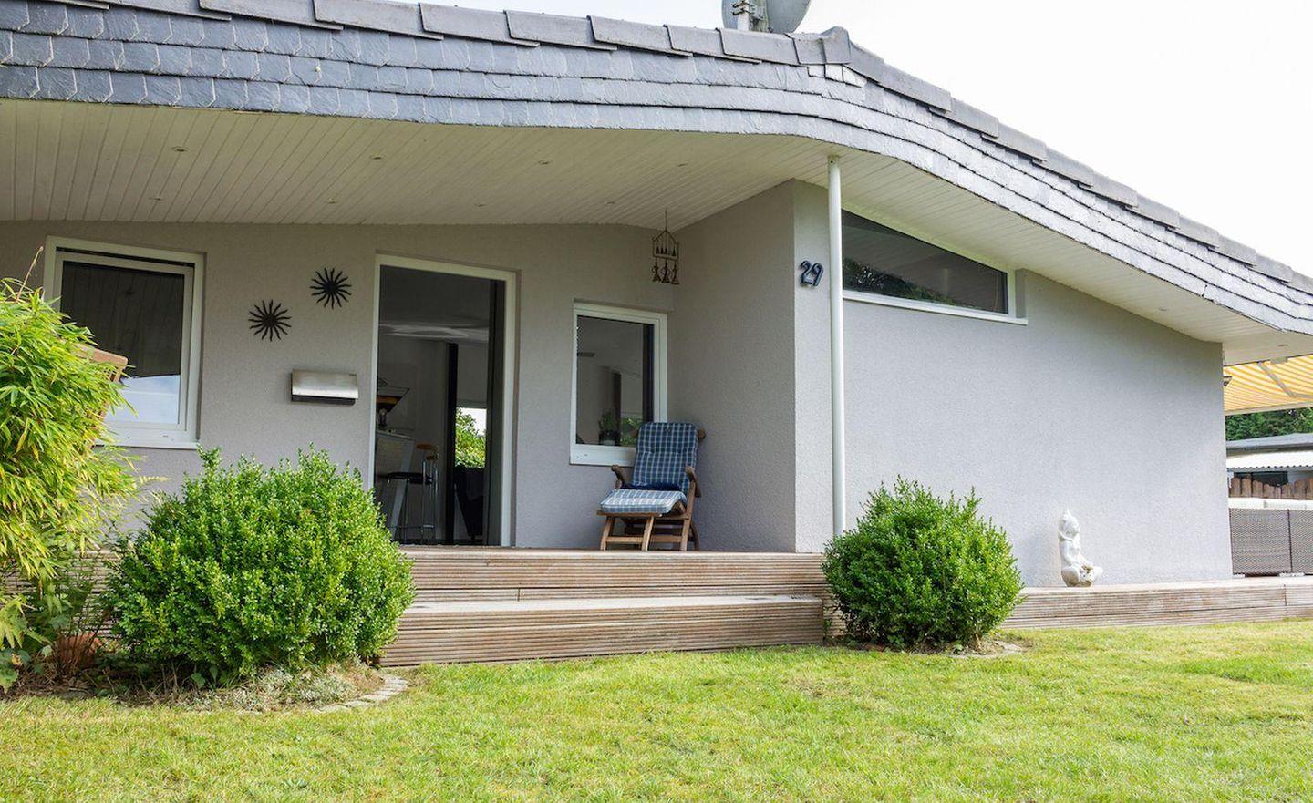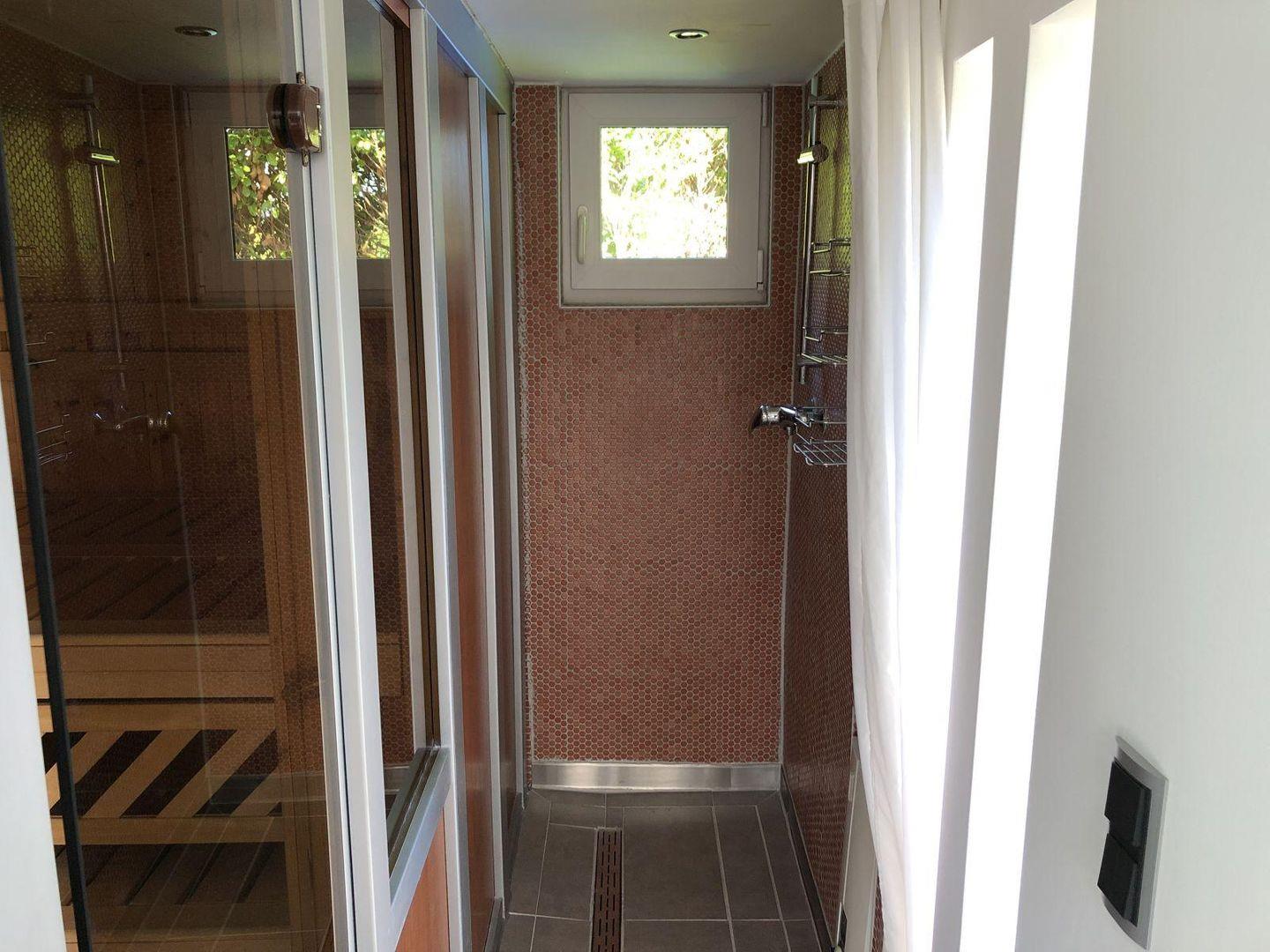 Nur 5 Gehminuten zum Strand. Saunabereich, Außenwhirpool, große Terrassen mit Garten. Geeignet für bis zu 4 Personen und 2 Hunde.