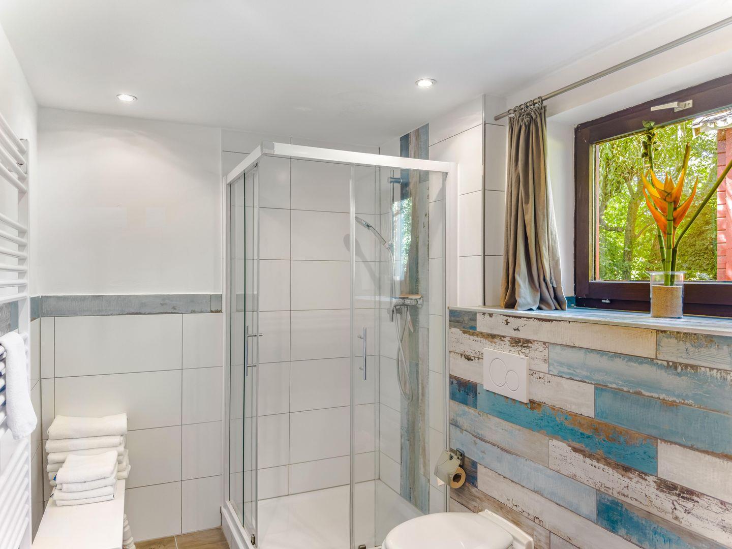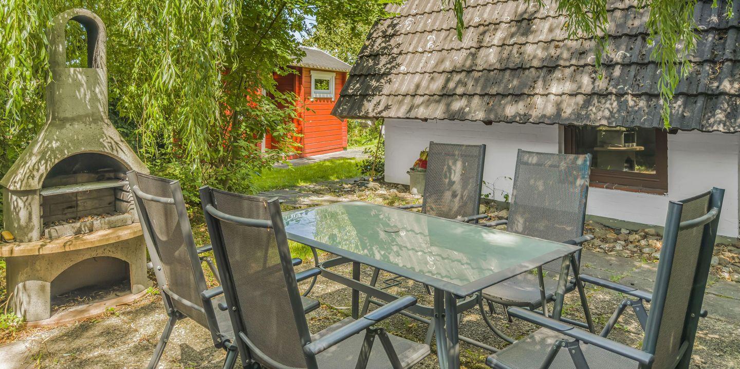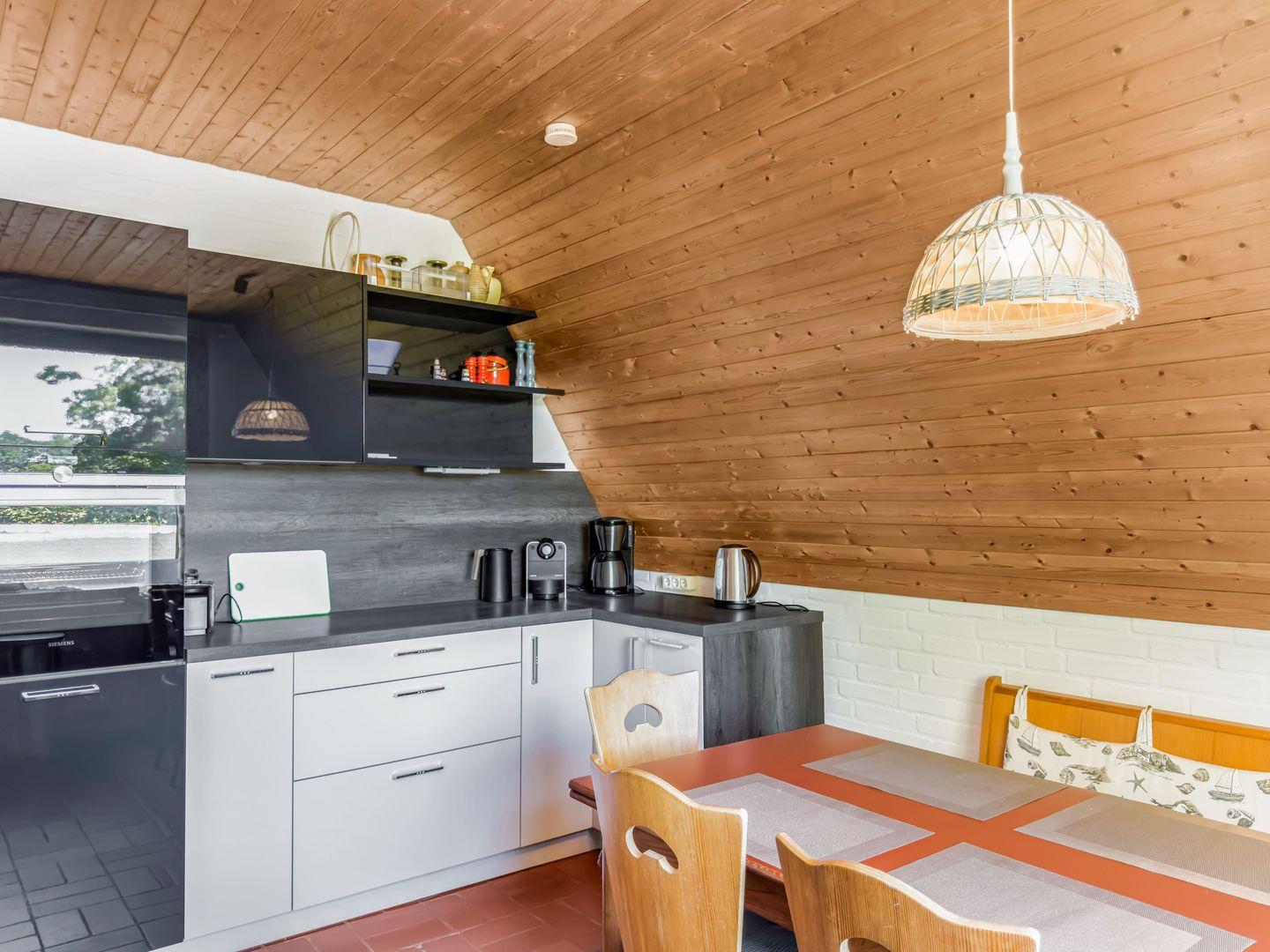 Dieses großzügige 5-Zimmer-Nurdachhaus bietet auf ca. 135 m² viel Platz für einen entspannten Urlaub in ruhiger Lage, direkt angrenzend an ein Naturschutzgebiet. Die moderne Ausstattung umfasst ein Duschbad mit Flachdusche, ein Gäste-WC und drei Schlafzimmer, darunter eines mit Doppelbett, eines mit Einzelbetten (die auch als Doppelbett gestellt werden können) und eines mit einem Etagenbett. Die Einbauküche mit Nespresso-Maschine und großem Sitzplatz lädt zum gemeinsamen Kochen ein, während das Wohnzimmer mit Ledercouch, TV und Musikanlage für Unterhaltung sorgt. Entspannen Sie sich in der Relaxecke mit Schlafcouch oder genießen Sie den Aufenthalt auf der möblierten Terrasse mit Grillkamin. Für zusätzliche Erholung sorgt das Saunahaus. Im Garten können Sie die Ruhe genießen, während Kinderhochstuhl und -reisebett für den Komfort der Kleinen sorgen. Die private Auffahrt bietet Parkmöglichkeiten, und die nahegelegenen Strände in Niendorf und Travemünde sind in nur wenigen Minuten erreichbar.