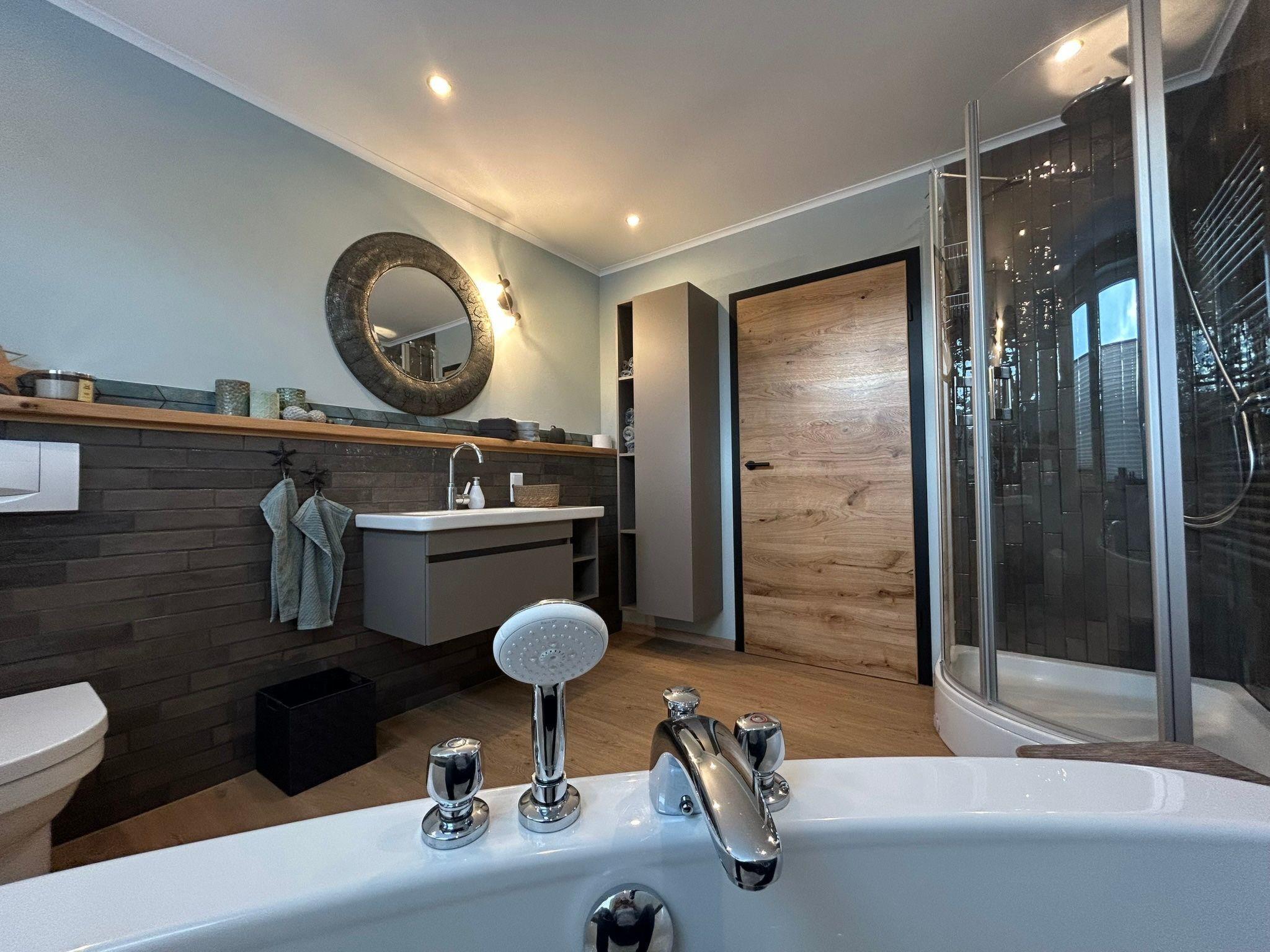 Inside, the chalet enchants with its well thought-out room layout and stylish interior design. On the ground floor, the open-plan kitchen and living area invites you to linger together, complemented by a spacious bathroom and two charming bedrooms. The upper floor houses two further cosy bedrooms and an additional bathroom, both of which offer comfort and privacy.