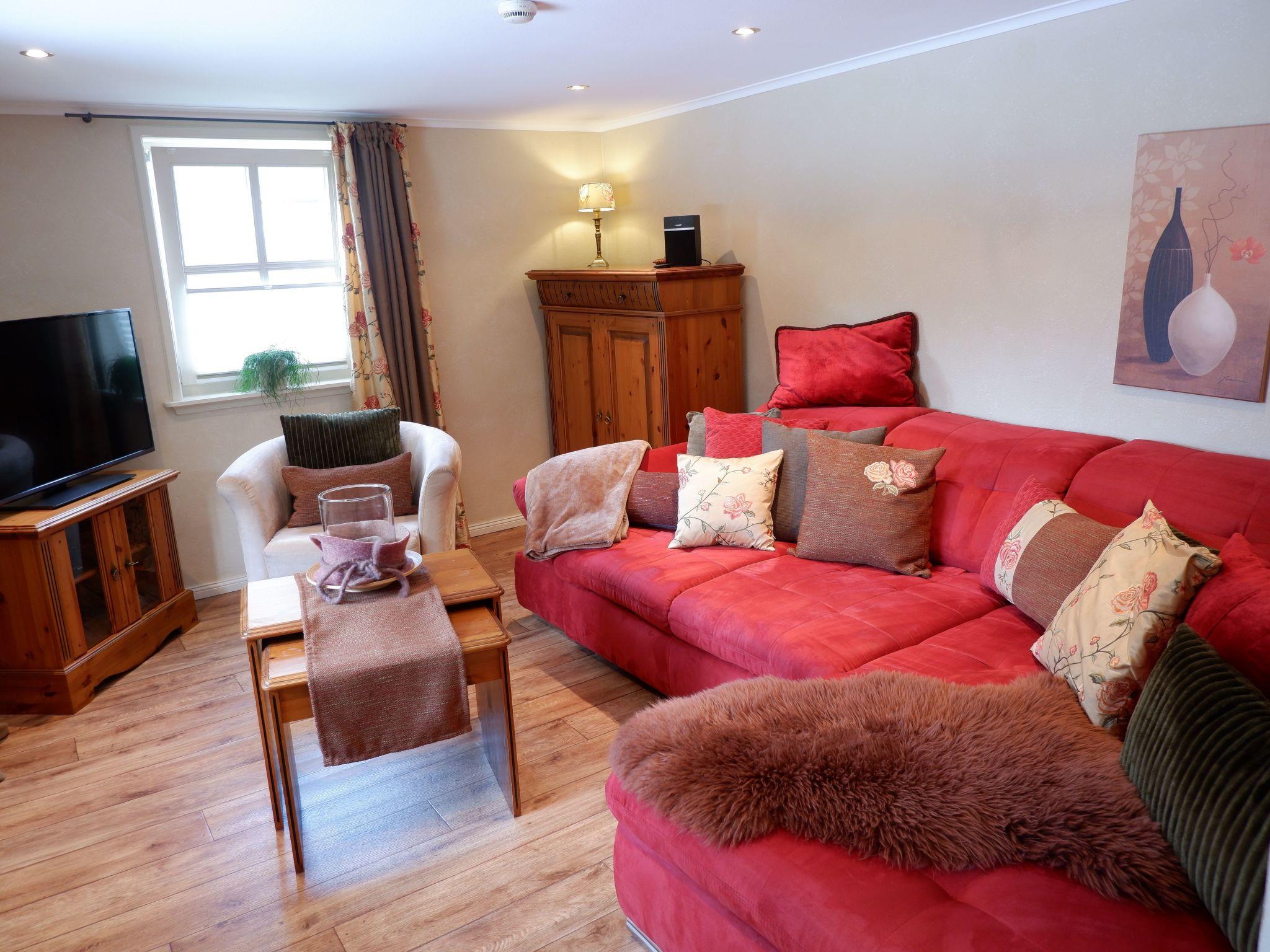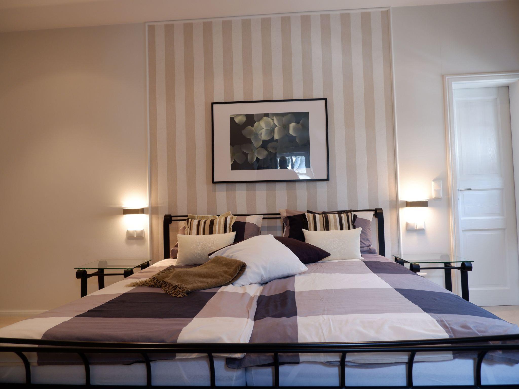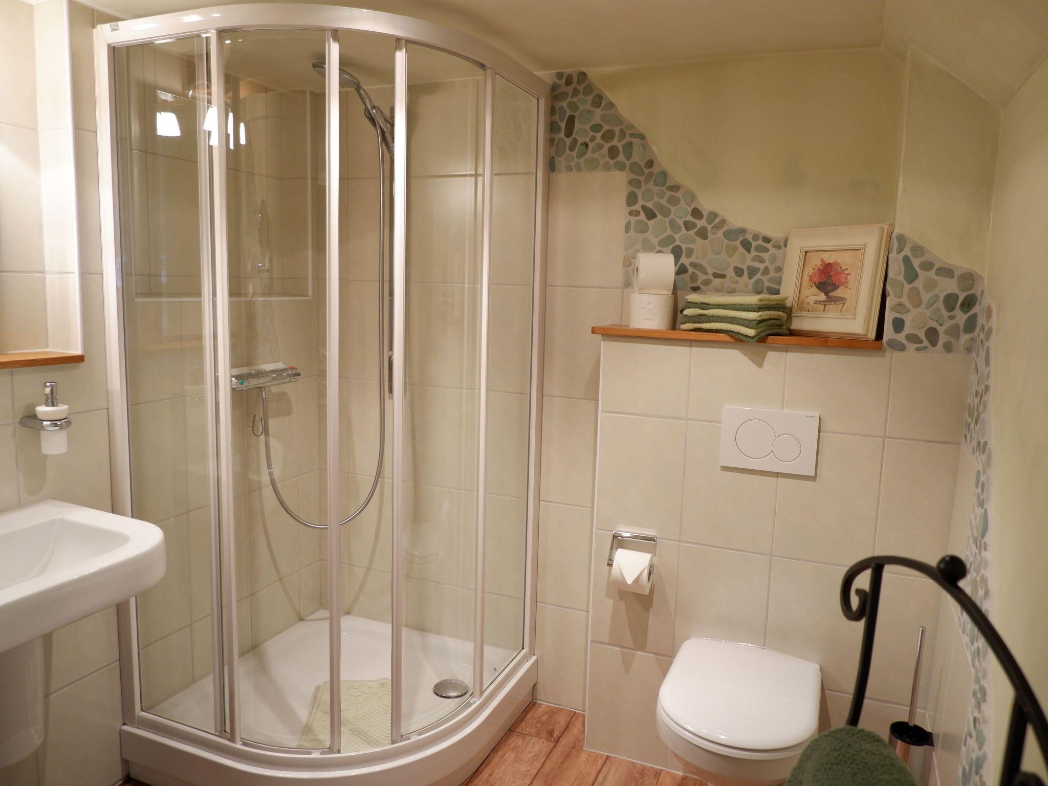The interior of the holiday flat tastefully combines historical elements with the comfort you need for a carefree holiday. Each of the three complete flats offers a fully equipped kitchen and private bathrooms to ensure maximum privacy and comfort for all guests. There is also a washing machine and tumble dryer for your exclusive use. The central meeting point is the 5-metre-high lounge, which has a traditional fireplace for cosy hours.