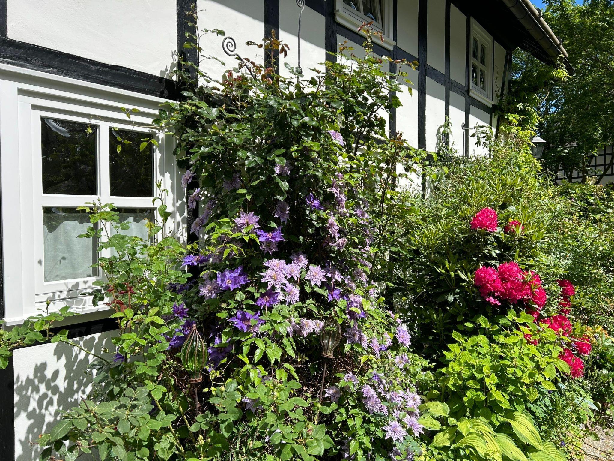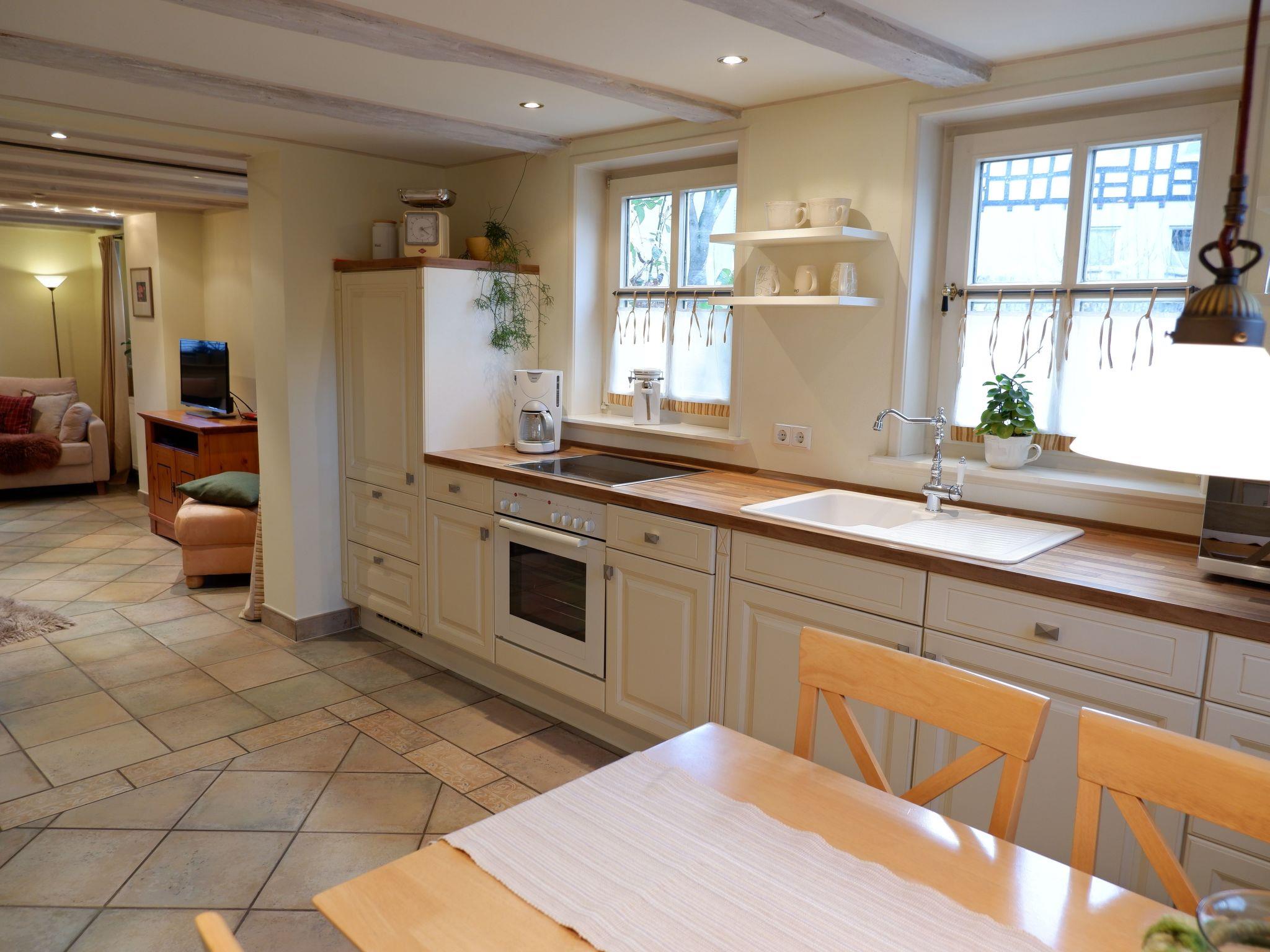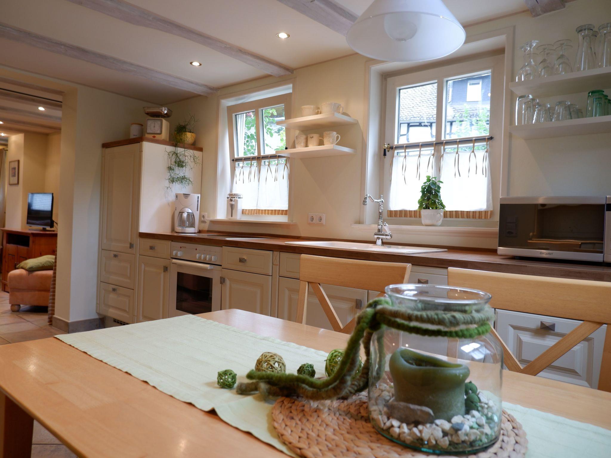 Inside the house you will find a perfect symbiosis of tradition and comfort. The rooms are characterised by the original half-timbered elements and lovingly restored details that make the historical flair palpable. At the same time, contemporary amenities such as a fully equipped kitchen with filter coffee machine, kettle and dishwasher ensure that you will want for nothing. A cosy bedroom and a modern bathroom with shower round off the offer.