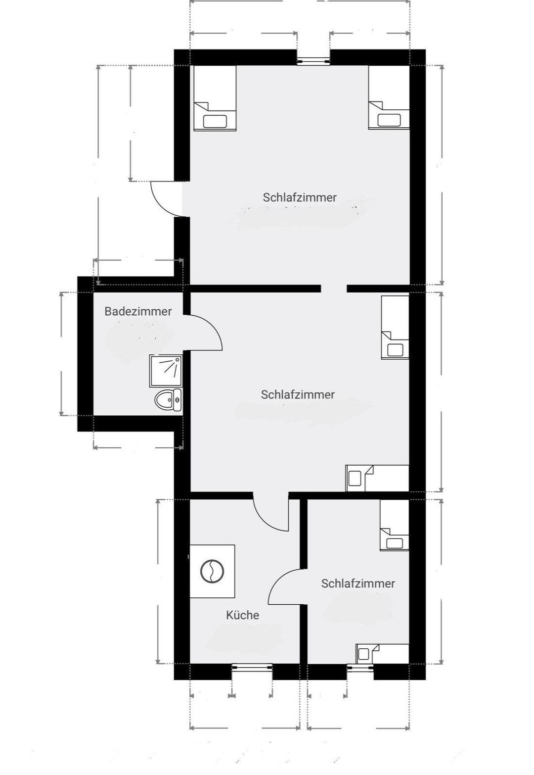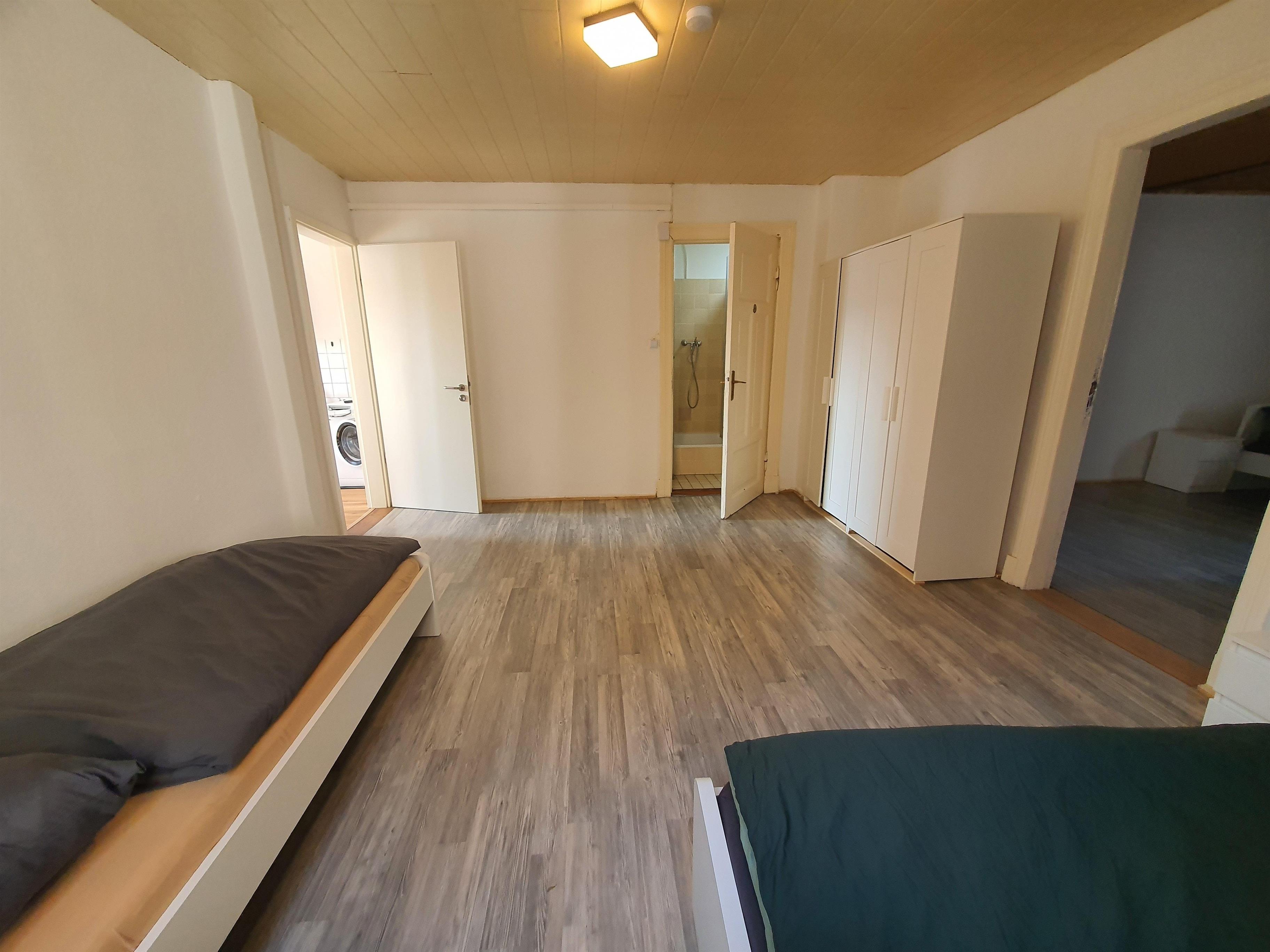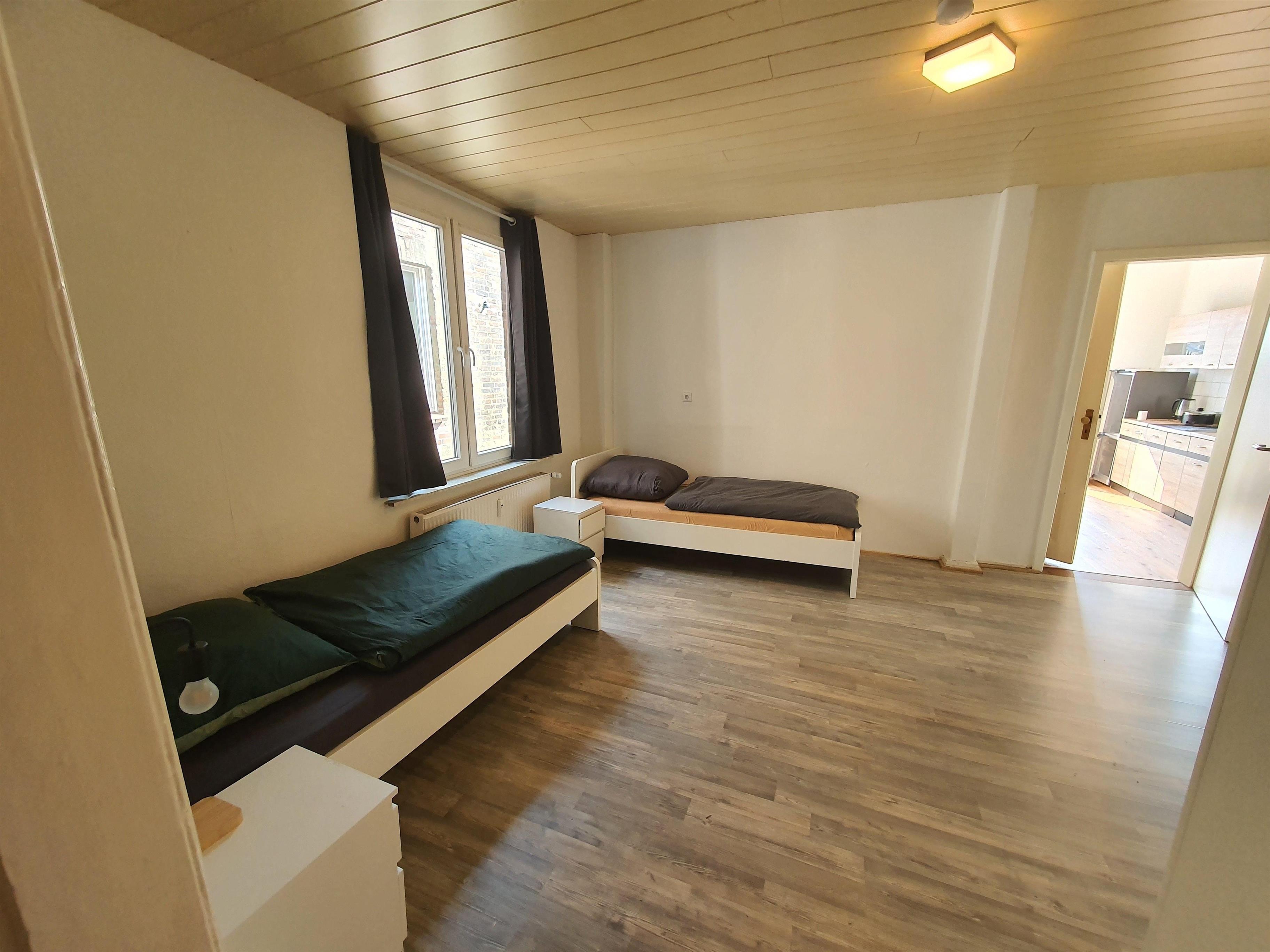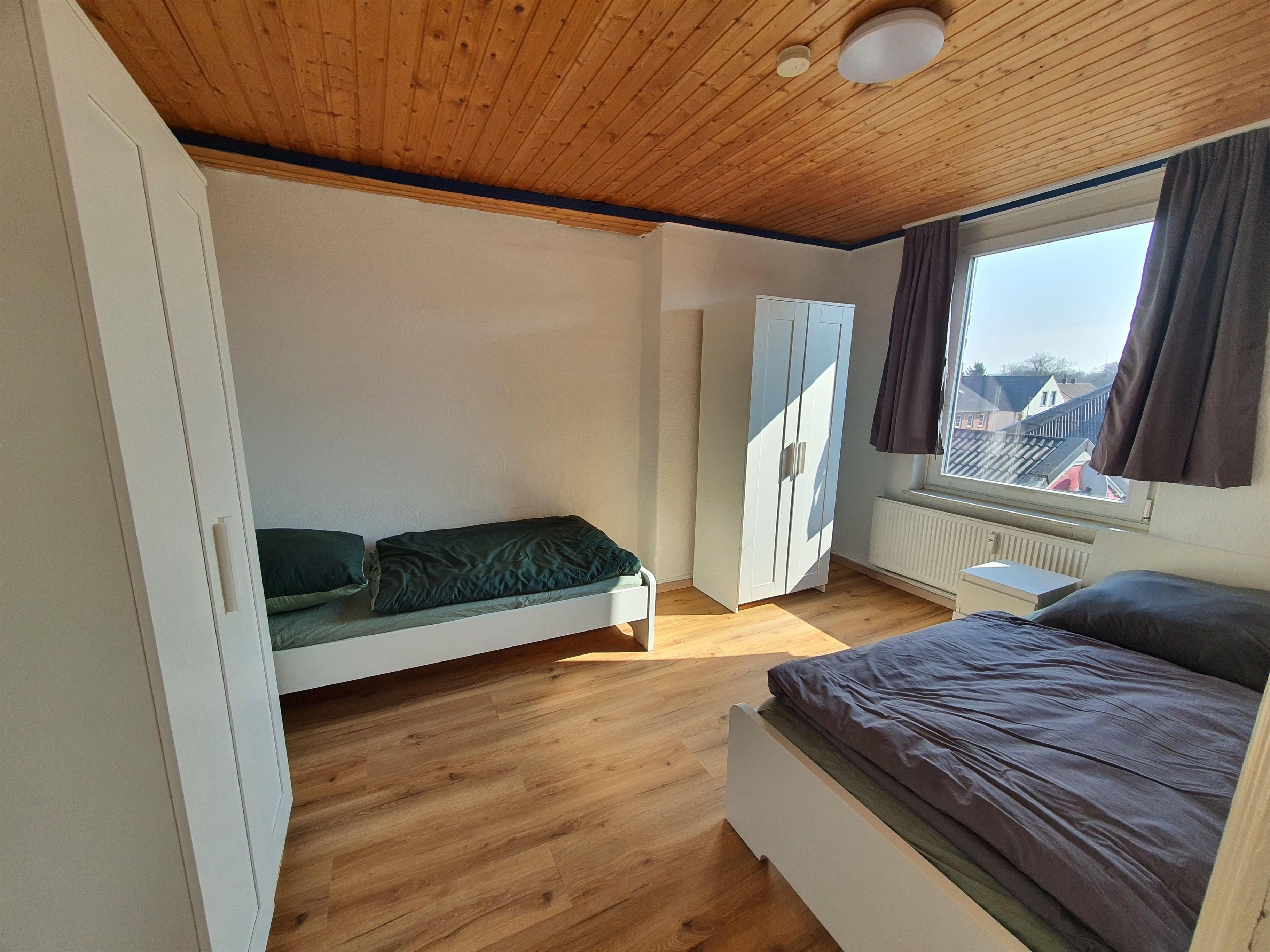 Die Wohnung hat 3 Zimmer und ist mit 6 komfortablen Einzelbetten, Kleiderschränken, Stühlen und Tisch, W-Lan sowie TV eingerichtet.