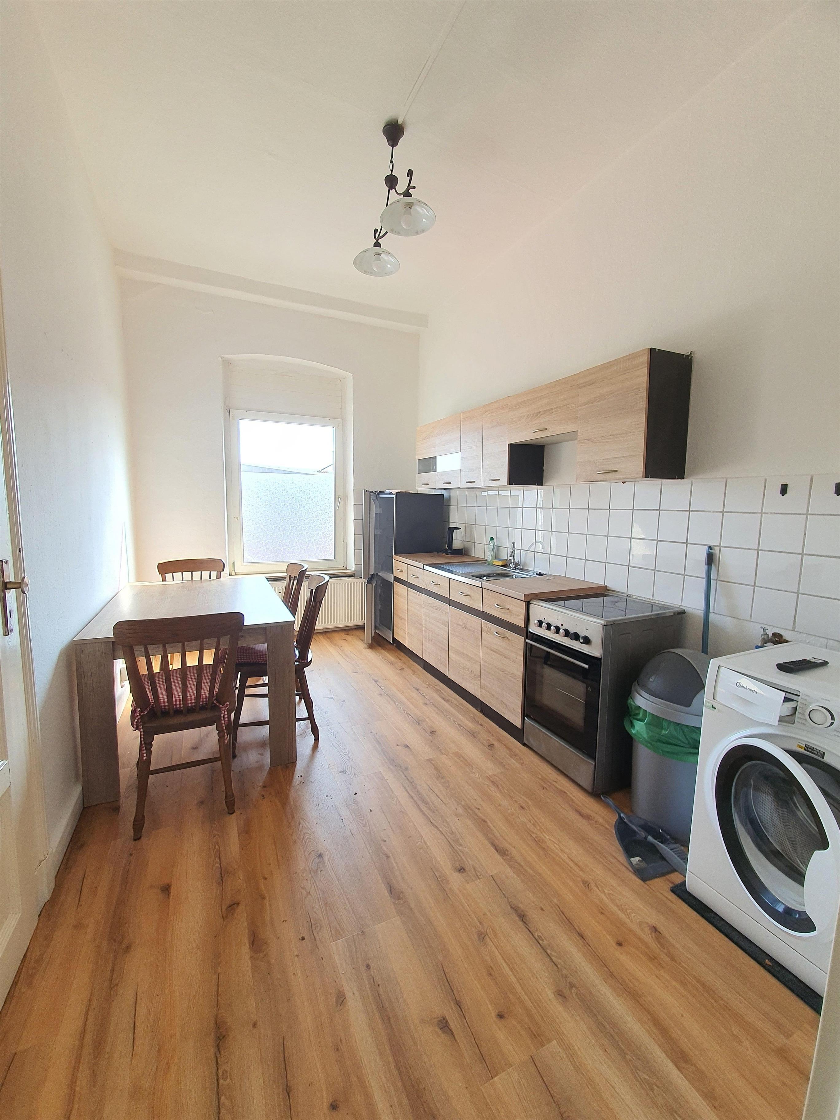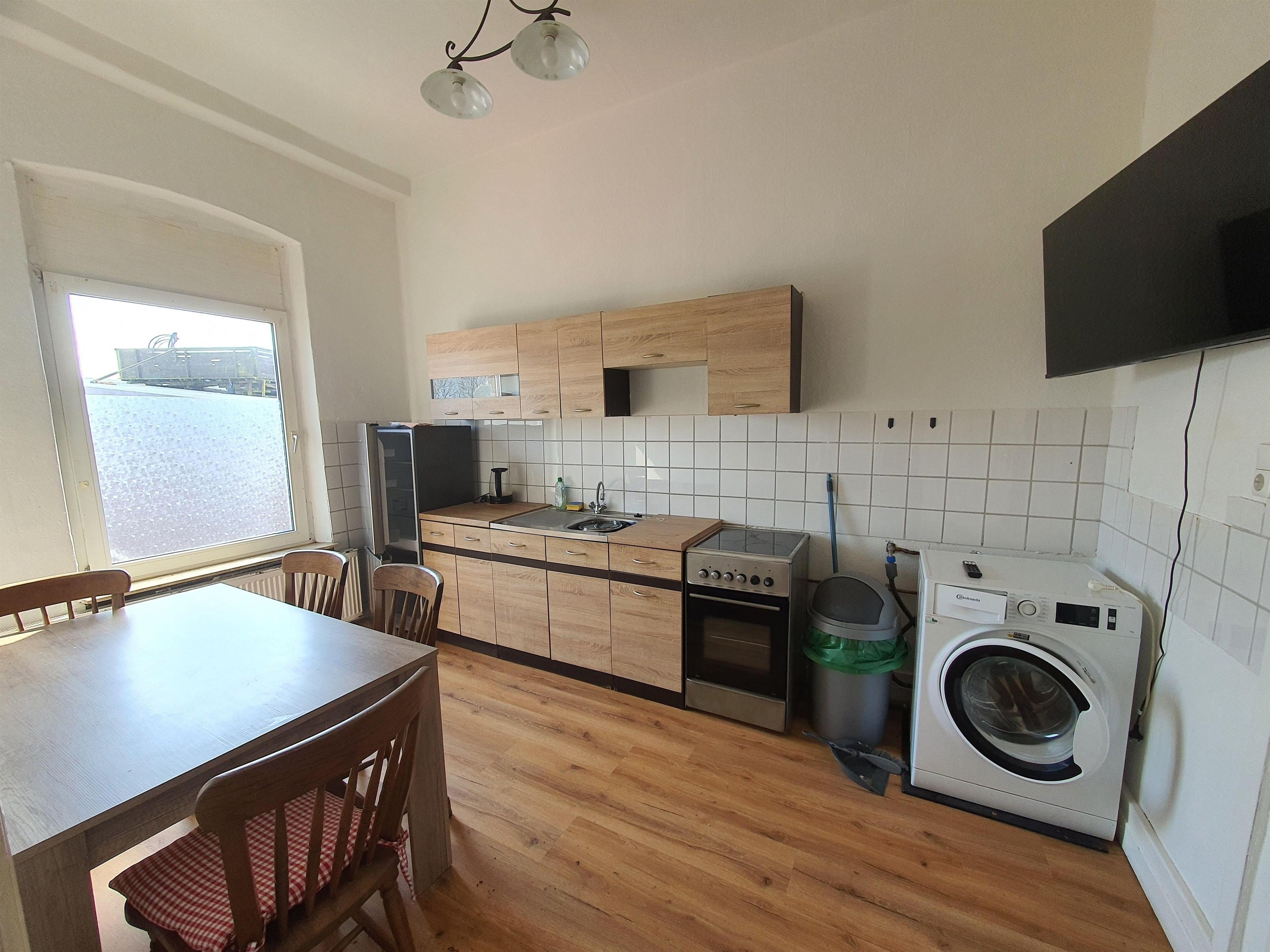 In der Küche befindet sich, ein Ceranherd, Backofen, Kühlschrank, Kaffeemaschine, Wasserkocher und ausreichend Geschirr, sowie eine Waschmaschine.
