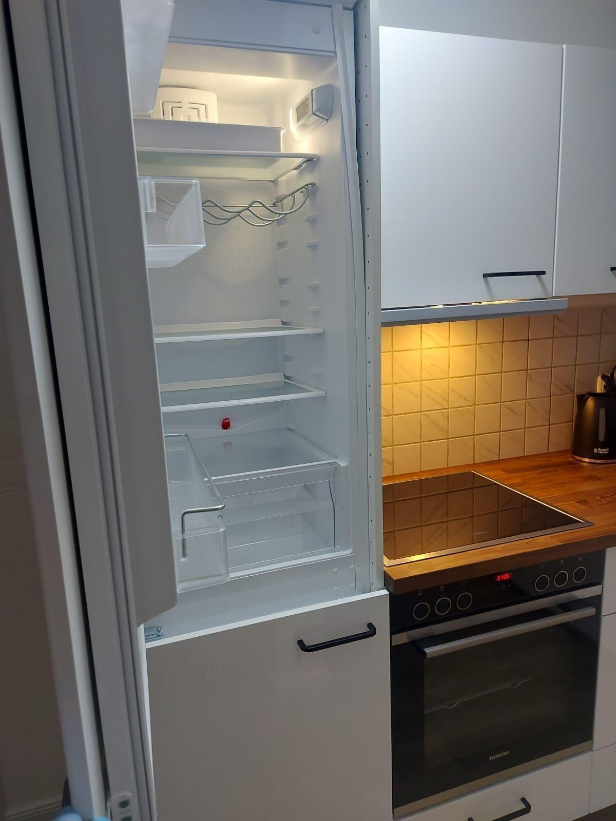 In der Küche befindet sich, ein Ceranherd, Backofen, Kühlschrank, Kaffeemaschine, Wasserkocher, Mikrowelle und ausreichend Geschirr.