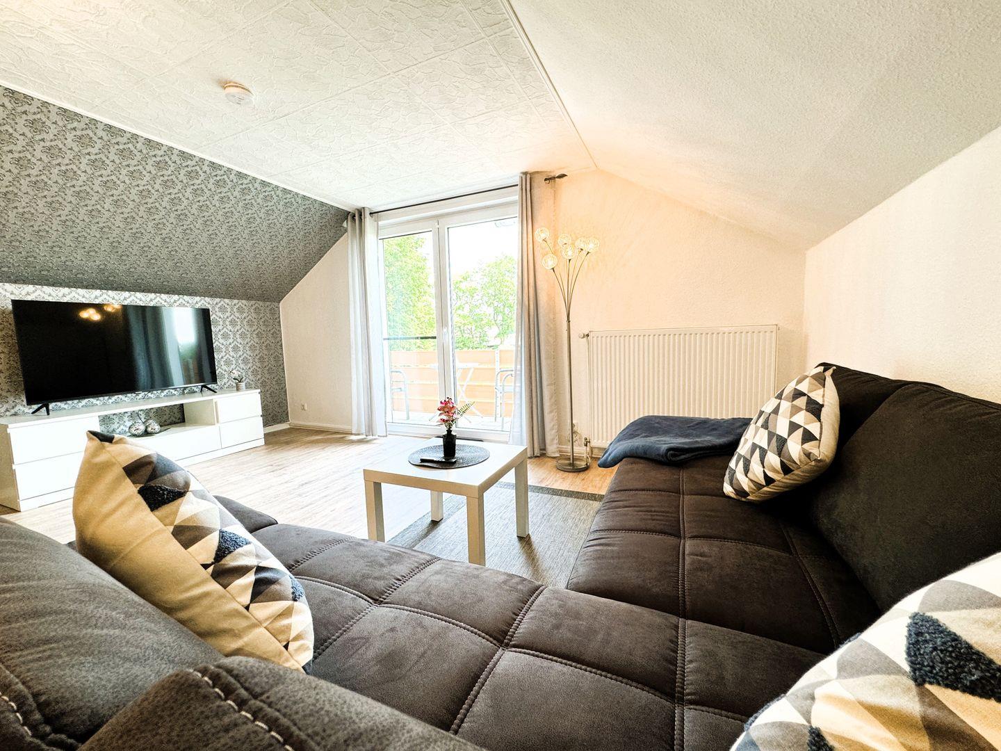 65m² Apartment mit 2 Schlafzimmern, Bad mit Dusche, großes Wohnzimmer mit Balkon und offener Küche, 1-4 Pers.