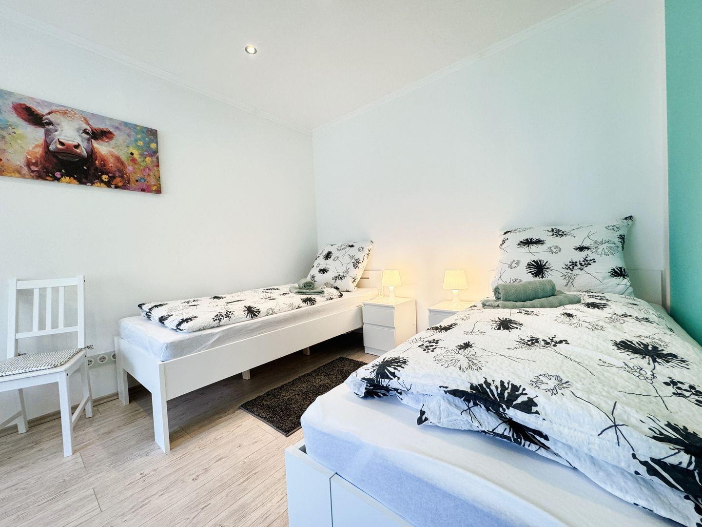 In den beiden Schlafzimmern finden Sie jeweils 2 getrennt stehende Einzelbetten (90x200cm) und ausreichend Stauraum für Ihre Utensilien und Kleidung.