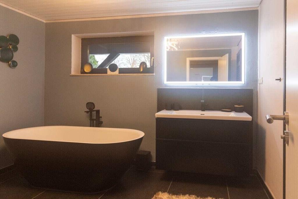 Kom og besøk vårt eksklusive feriehus. 66 m² ren ferie venter deg, med ett soverom, en stue og ett kjøkken. Huset ble totalrenovert og modernisert i 2024. Et luksuriøst bad med frittstående badekar, et fullt utstyrt moderne kjøkken og en smakfullt møblert stue med en stor sofa, lesekrok og stort spisebord etterlater ingenting å ønske seg. En overbygd loggia, rett ved siden av stuen, inviterer deg til å slappe av. Terrassen, ved siden av kjøkkenet, er møblert med loungemøbler. En andre terrasse er perfekt for utendørs servering. I den romslige hagen med modne trær og et hageskur kan du sole deg, leke eller bare nyte utsikten. To parkeringsplasser ligger rett foran huset. Kjelleren har et stort vaskerom med vaskemaskin og tørketrommel. Sykler/elsykler kan trygt oppbevares i hageskuret eller i kjelleren. Eiendommen er inngjerdet, slik at kjæledyr ikke kan slippe unna.