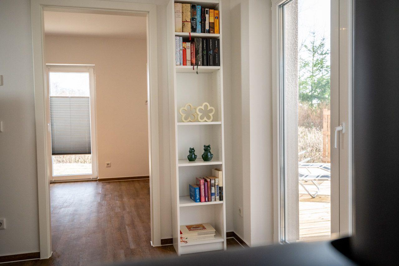 Das Ferienhaus "Schilfblick" ist nur 50 m Luftlinie vom Müritzsee entfernt. Schlendern Sie am Seeufer weiter und erreichen Sie nach weiteren fünf Minuten den kleinen Badestrand. Das sehr geschmackvolle, helle und komfortabel ausgestattete Ferienhaus bietet mit seinen 2 Schlafzimmern Platz für 4 Erwachsene. Zudem hat es vom Wohnzimmer und der offen gestalteten Küche aus einen direkten Zugang auf die große Terrasse mit Außengrill. Hier können Sie in aller Ruhe den Tag mit einem gemütlichen Frühstück beginnen oder bei einem Glas Wein am Abend ausklingen lassen. An kalten Wintertagen sorgt der Kaminofen im Wohnbereich für zusätzliche Wärme und Gemütlichkeit. Parken können Sie mit 2 Autos direkt am Haus. Das Objekt ist komplett eingezäunt und verfügt über Fliegengitter .(auch im Badezimmer) und WLAN. Gardinen im Wohnbereich wurden ebenfalls nachgerüstet.