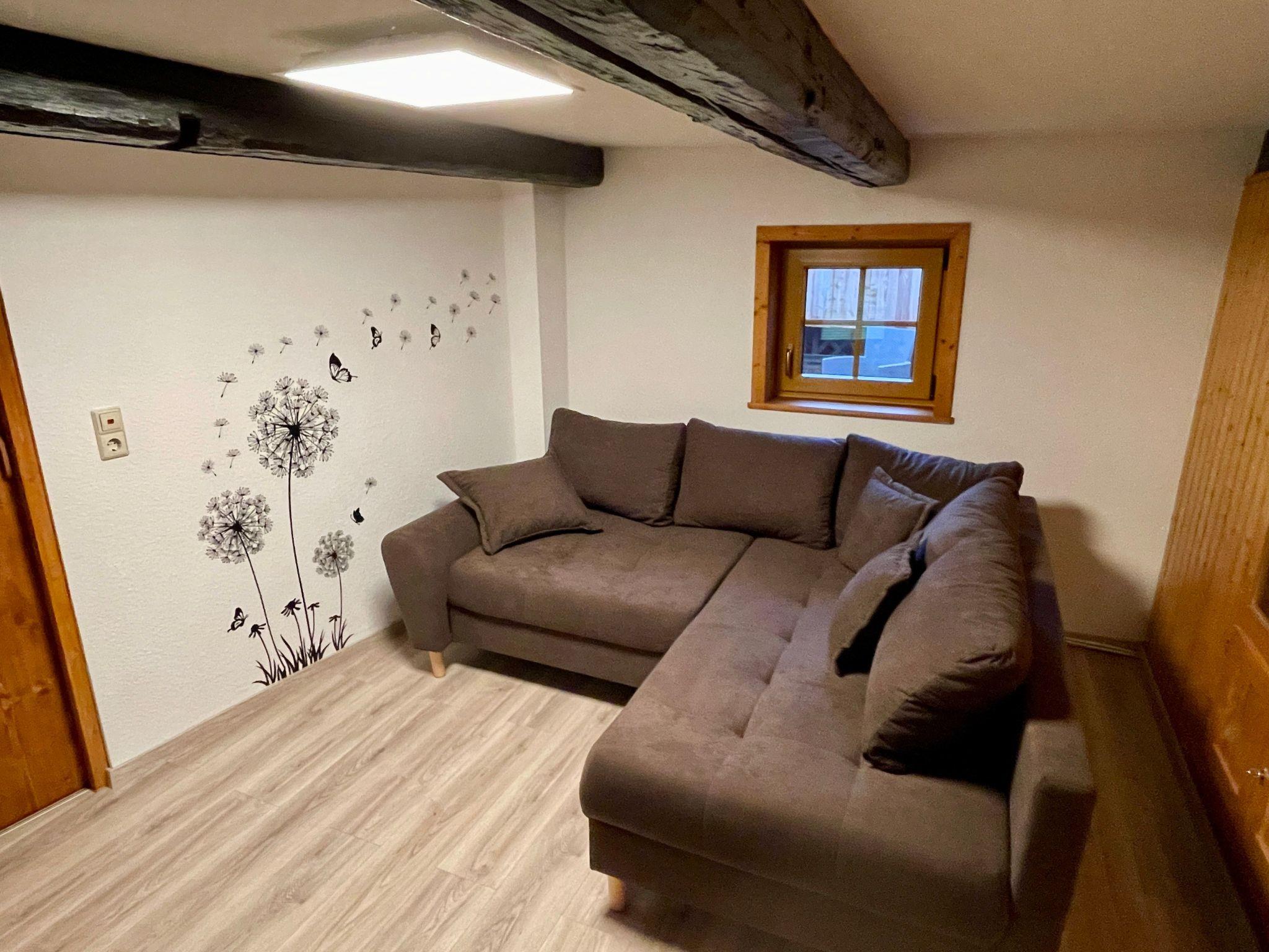 The interior of the Hexenhäuschen is a perfect blend of modernity and cosiness. Equipped with free WiFi, the spacious living/dining area with its 46-inch TV and cosy wood-burning stove makes for unforgettable moments of well-being. The fully equipped kitchen invites you to cook together, while the bathroom with its rain shower promises pure relaxation. A further WC with washing facilities on the top floor provides additional comfort.