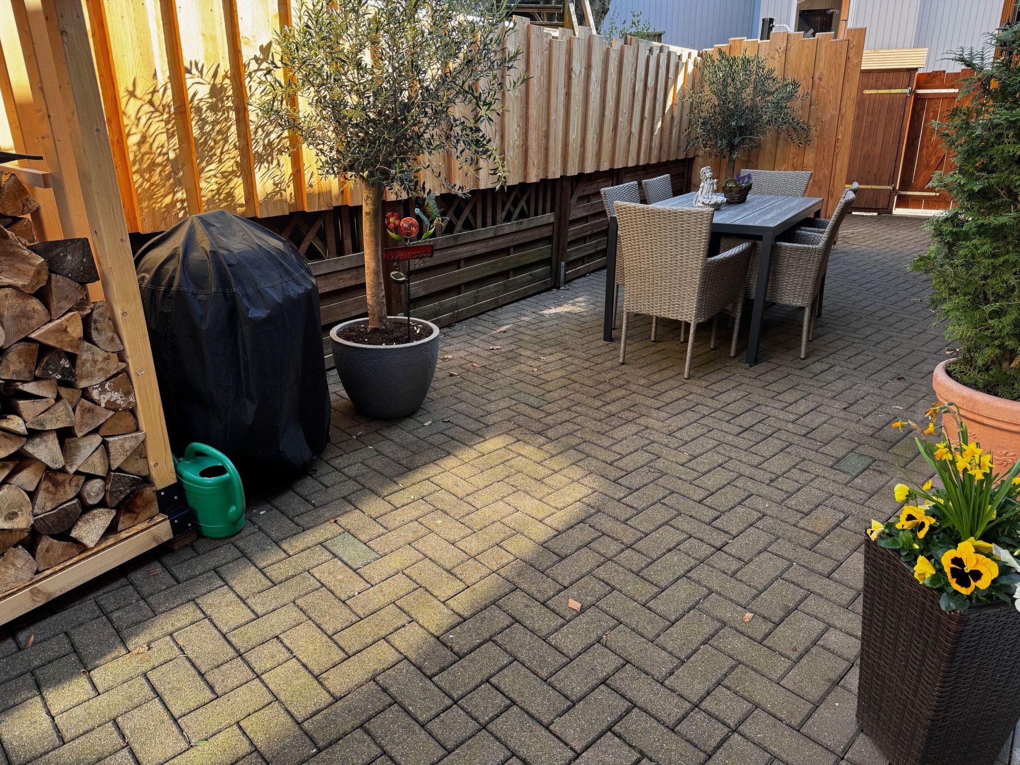 The outdoor area of the Hexenhaus is a true oasis of relaxation. After a sauna session, the outdoor shower (in operation except in sub-zero temperatures) invites you to freshen up, while the adjoining courtyard with its covered, cosy barbecue area invites you to linger. A small balcony with seating also provides the perfect backdrop for relaxing on warm days.
