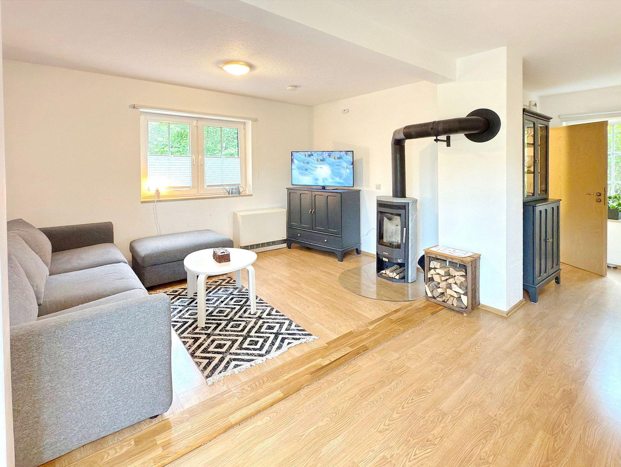 Das Ferienhaus ist modern eingerichtet und bietet Ihnen insgesamt 8 Schlafplätze. Im Erdgeschoss befindet sich die separate Einbauküche, die voll ausgestattet ist, mit einem Geschirrspüler, einem Cerankochfeld mit vier Kochmöglichkeiten, einem Backofen, einem Kühlschrank mit Gefriermöglichkeit, einer Kaffeemaschine, einem Wasserkocher sowie einem Toaster. Das Wohnzimmer bietet Ihnen genug Platz, mit einer gemütlichen Couchecke, Kamin und einem großen Esstisch. Sie haben direkten Zugang zur Terrasse. Das Badezimmer Dusche und WC befindet sich ebenfalls im unteren Wohnbereich.