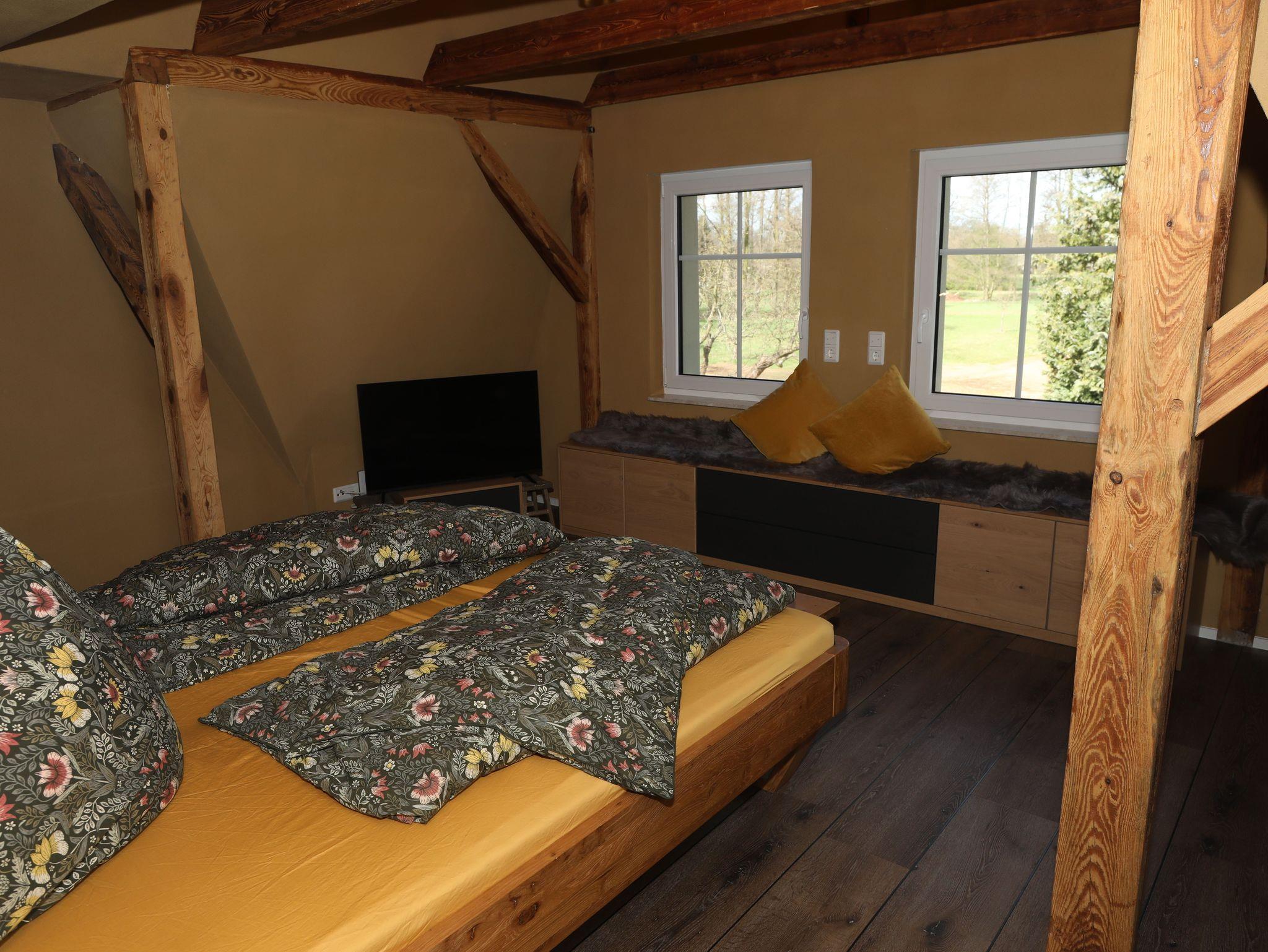Eingerahmt von historischem Gebälk erwartet Sie in der Wohnung `Zum Kahnschuppen´ pure Gemütlichkeit auf circa 78 Quadratmetern.