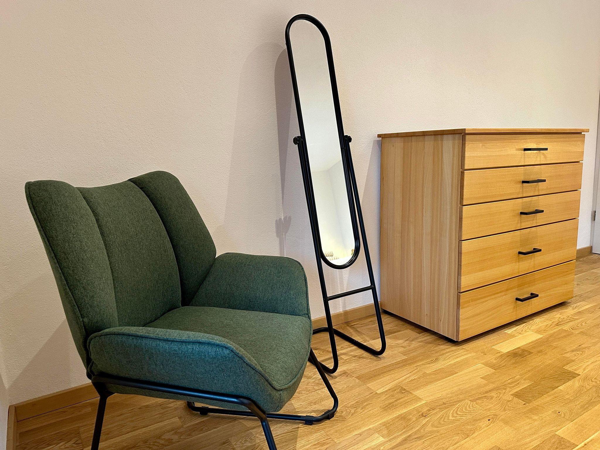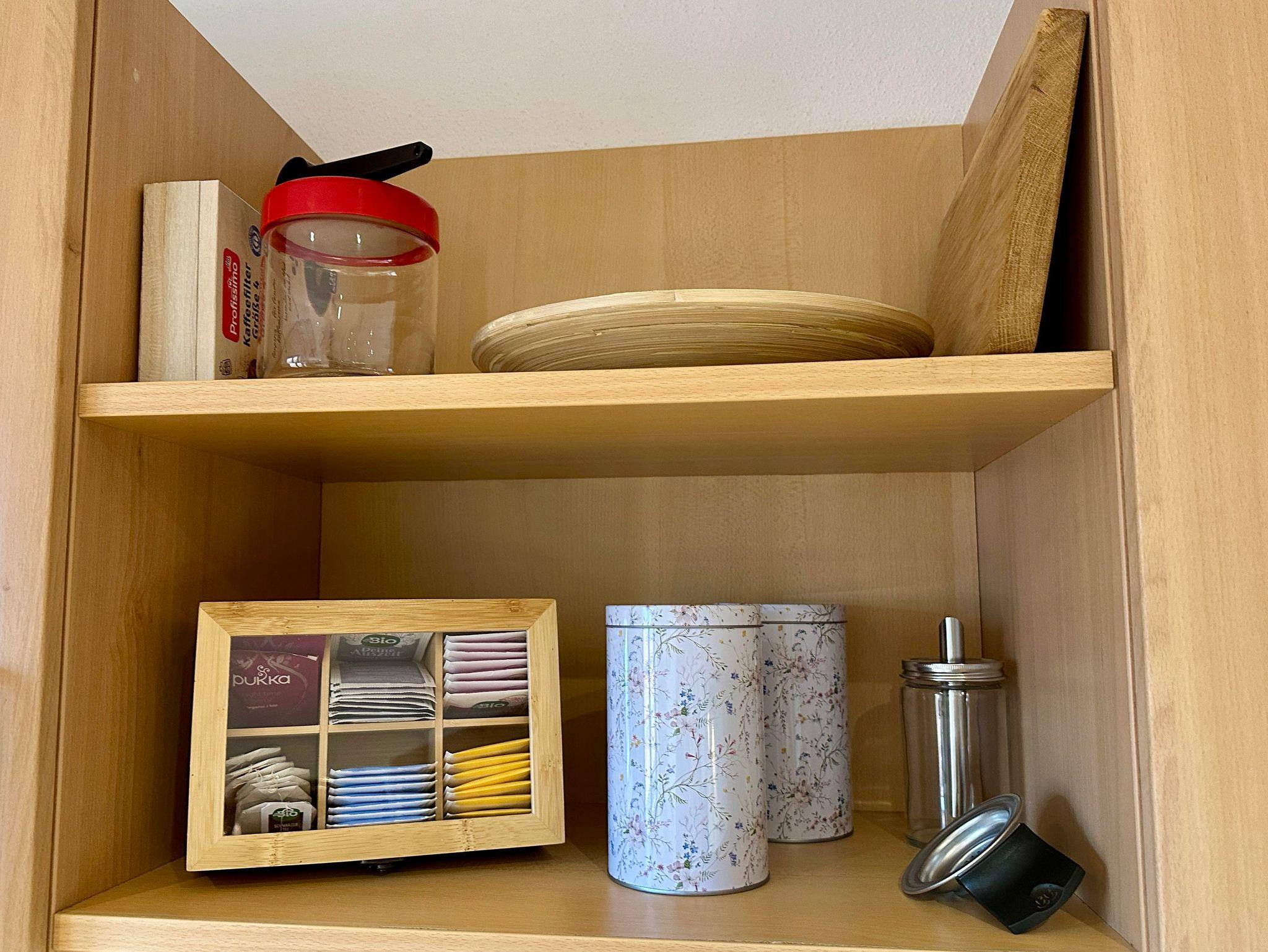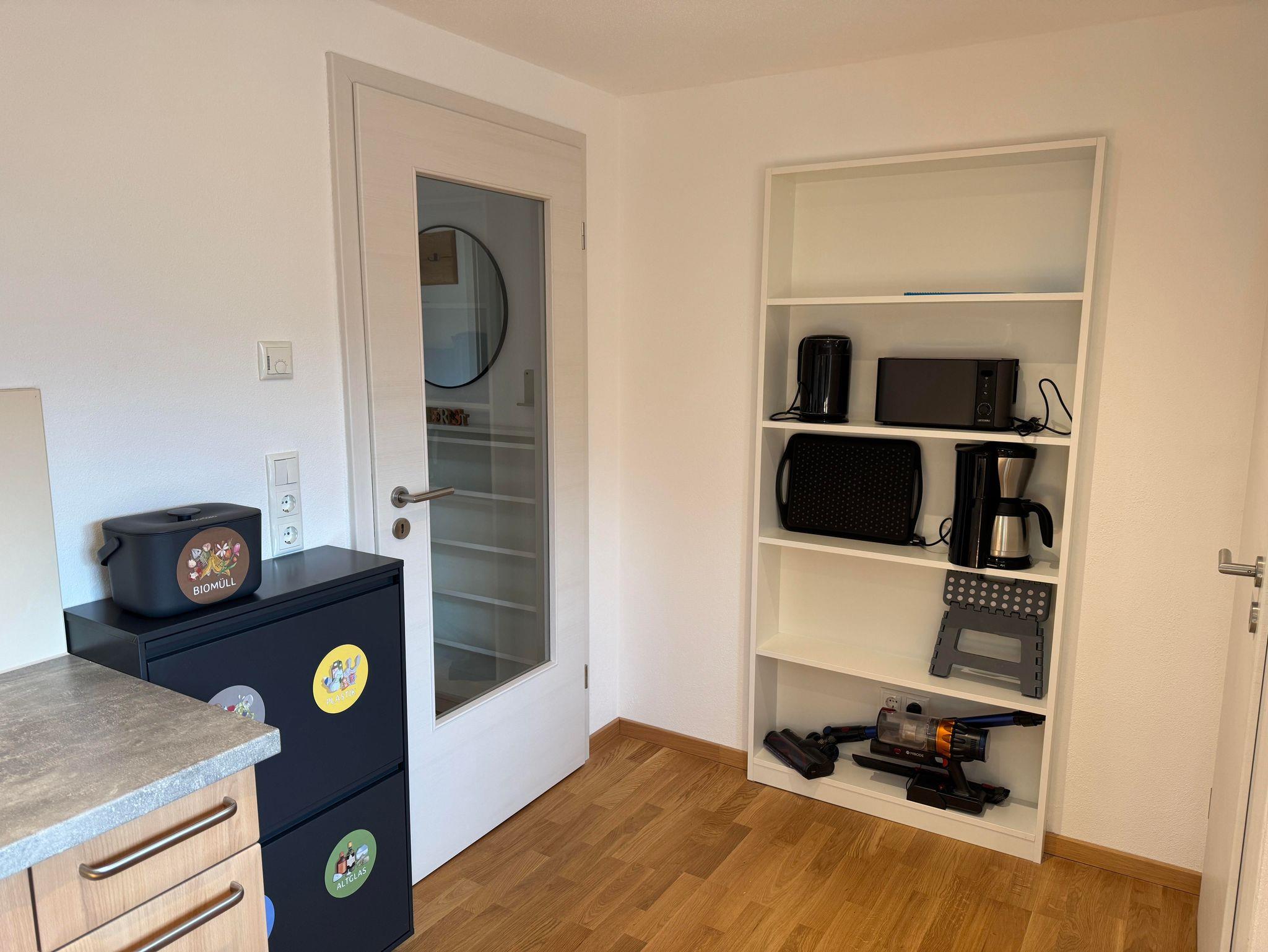 Zudem bieten wir euch eine voll ausgestatte Küche mit Herd, Backofen, Spülmaschine, Kühlschrank, Gefrierschrank, Mikrowelle, Wasserkocher, Toaster, Eierkocher, Senseo-Kaffeemaschine und Filterkaffeemaschine, allen möglichen Kochutensilien und Geschirr/Gläser, Müllbeutel, Putzlappen, Zewarolle, etc. Zum Start erhaltet ihr auch etwas Kaffee, Tee, Salz, Pfeffer, Essig und Öl. Ein kleiner Essbereich rundet die Küche ab.