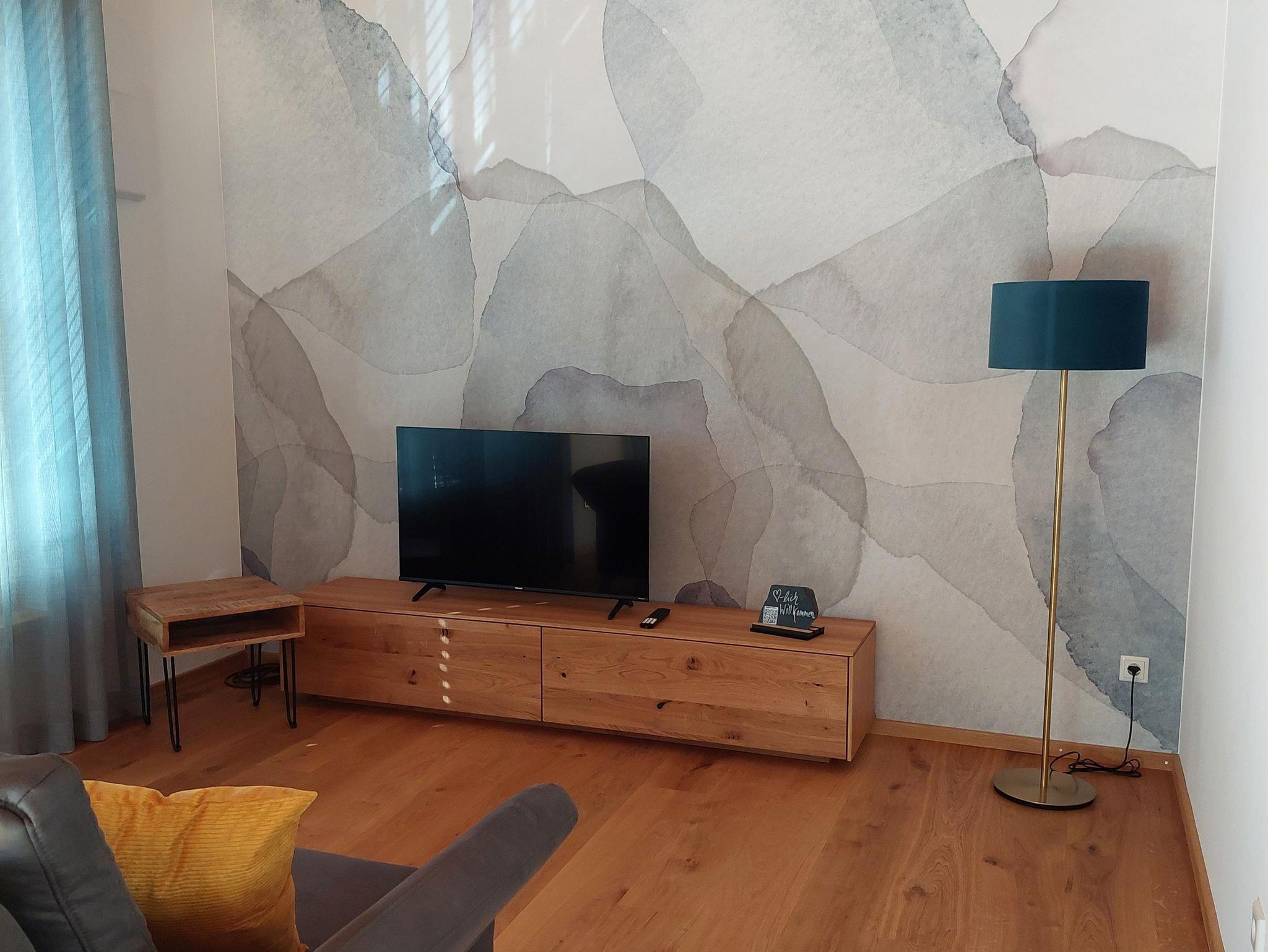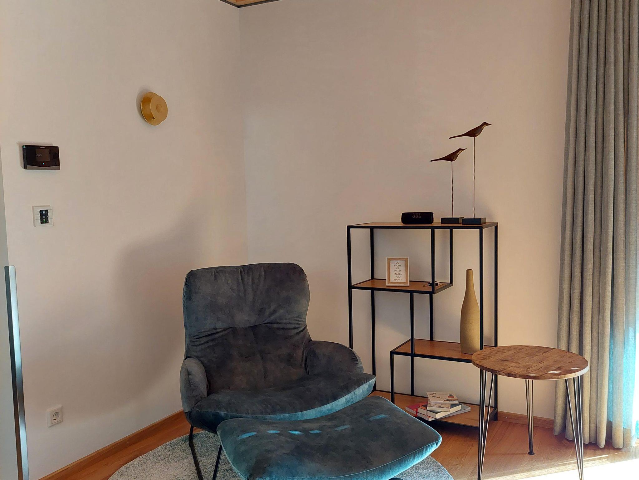 • Wohnzimmer mit Fernseher, Ausziehsofa (Schlafplatz 3 & 4 Pers.), Relaxsessel