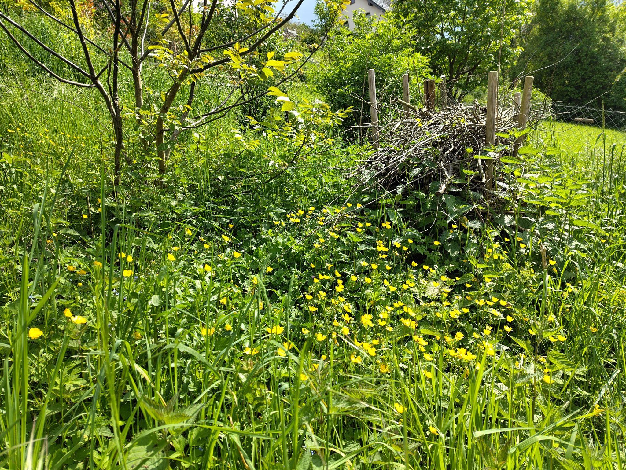• Ausblick von Terrasse und Schlafzimmer in den Garten mit Singvögeln, Schmetterlingen, ursprünglicher Flora und bald auch einem „Weg durch die Wildnis“ (hier müssen wir noch mit der Natur die optimale Gestaltung finden).