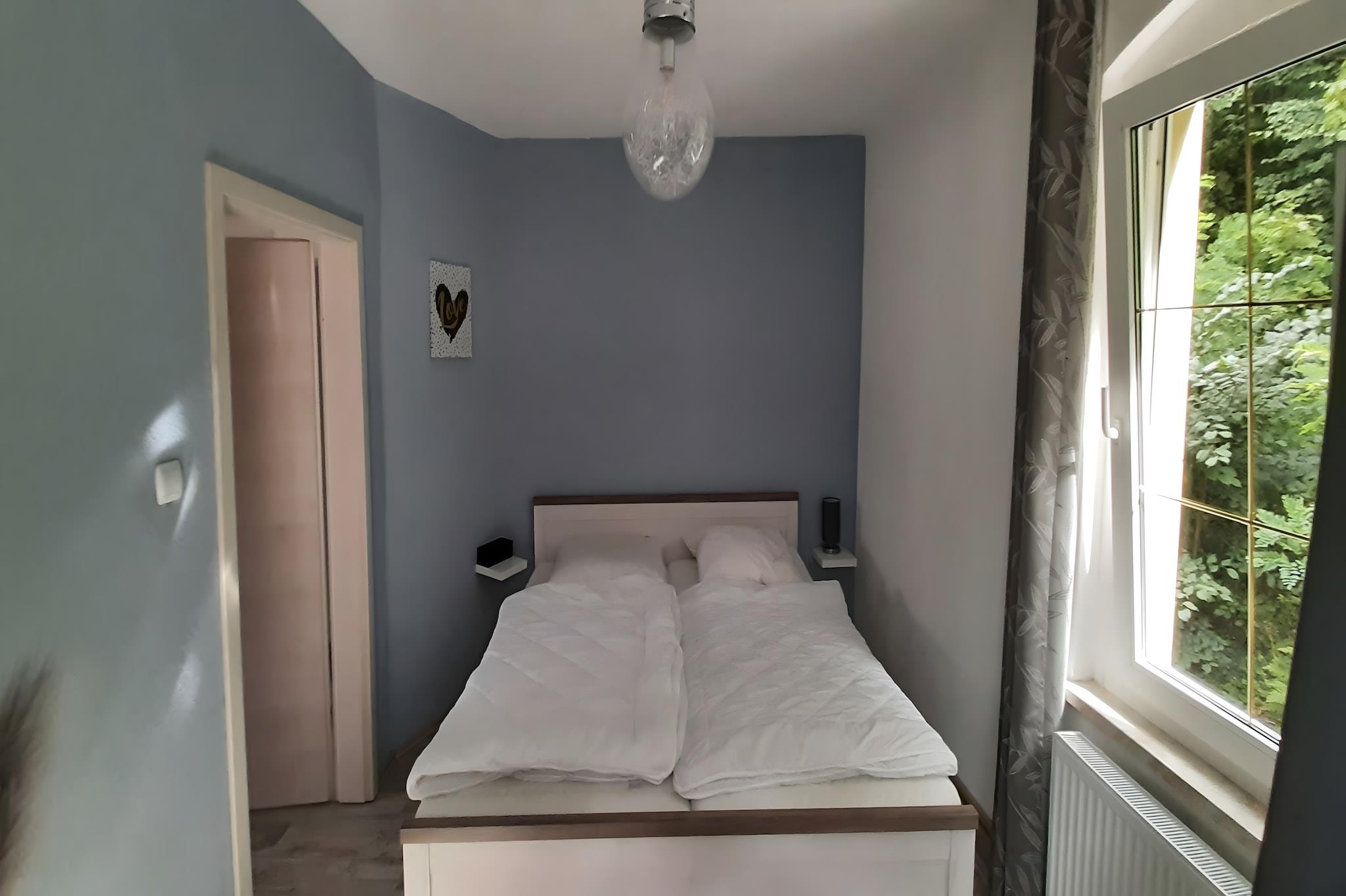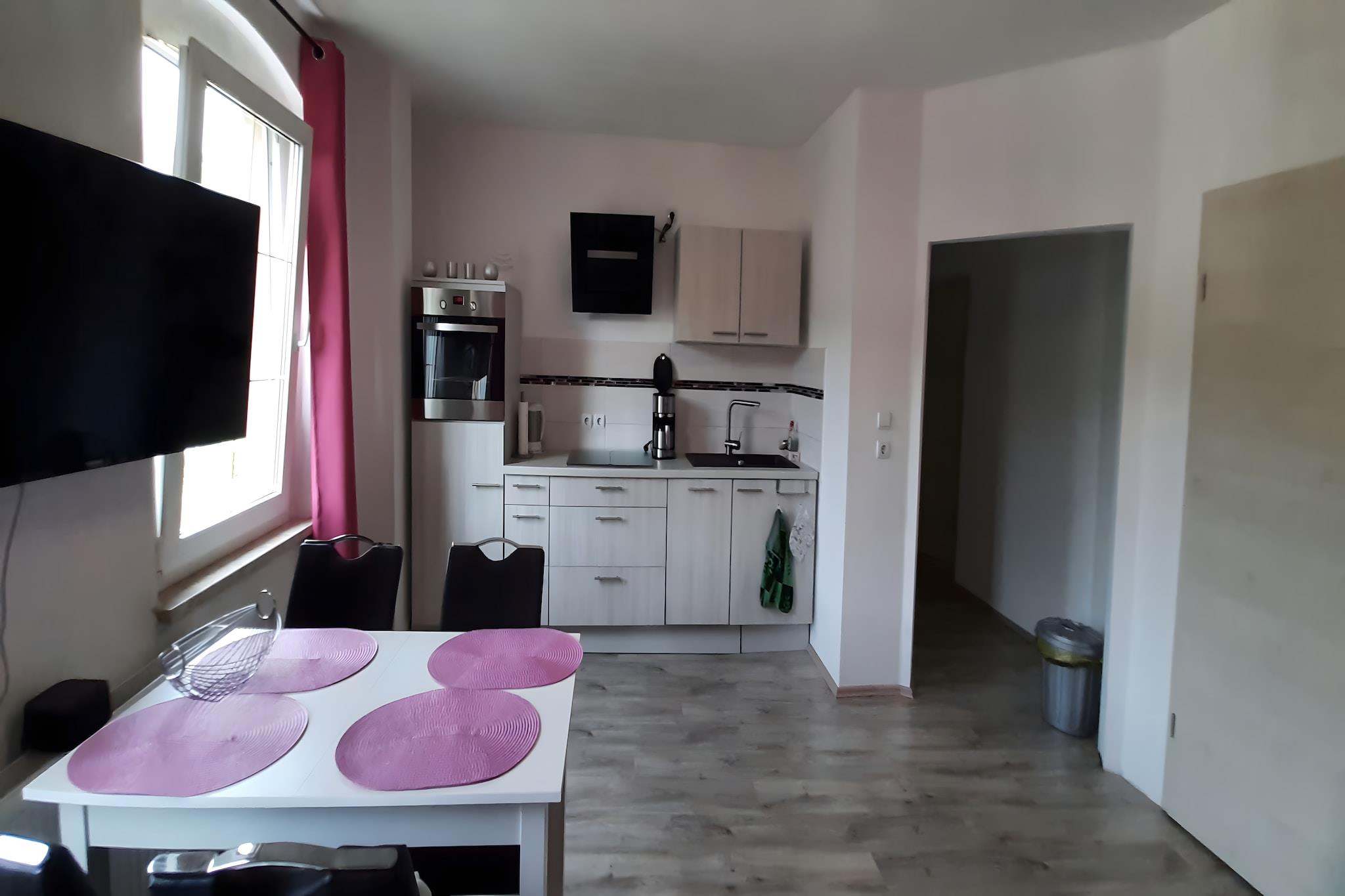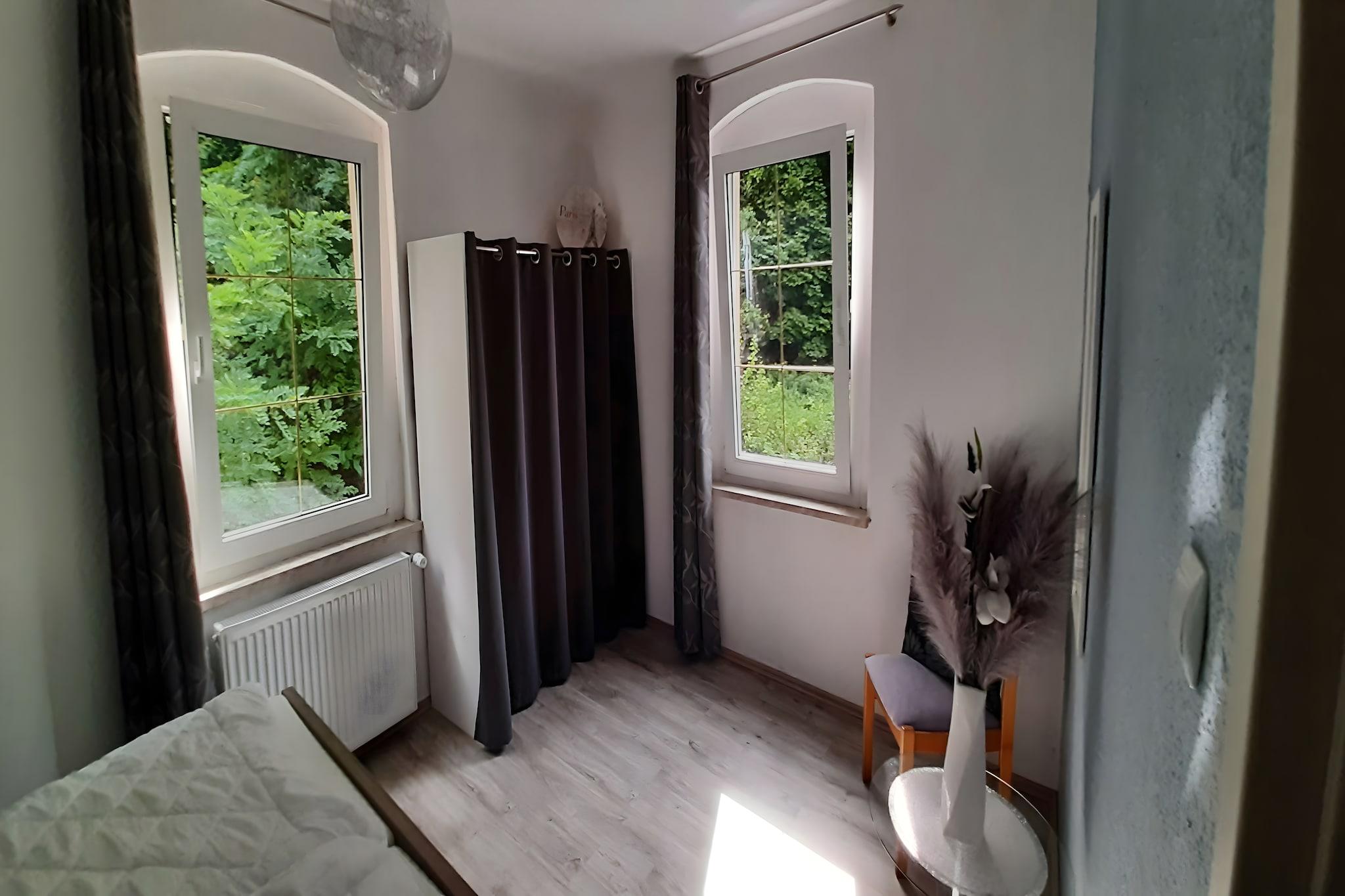 Bare 100 meter fra både Burgkhammer-sjøen og den naturskjønne Saale-elven, utgjør denne innbydende leiligheten i første etasje en fredelig base for par, små familier eller gjester som reiser med kjæledyr. Det åpne kjøkkenet er fullt utstyrt med komfyr, stekeovn, mikrobølgeovn, oppvaskmaskin, kjøleskap, vannkoker og kaffemaskin – perfekt for problemfrie måltider hjemme – mens den tilstøtende stue/spisestue har TV, spisebord og sittegruppe for å slappe av i komfort. Begge soverommene er utstyrt med dobbeltsenger og tilbyr et avslappende tilfluktssted etter en dag med utforsking av omgivelsene ved vannet. Badet har dusj, toalett og servant, med gjennomtenkte tilleggsutstyr som terrasse, hage, BBQ og hagemøbler som gir god plass for utendørs nytelse. Parkering er også tilgjengelig på stedet for ekstra bekvemmelighet. Med naturen bokstavelig talt noen skritt unna – pluss Burgkhammer Talsperre-demningen i nærheten – inviterer denne eiendommen til både ro og eventyr.