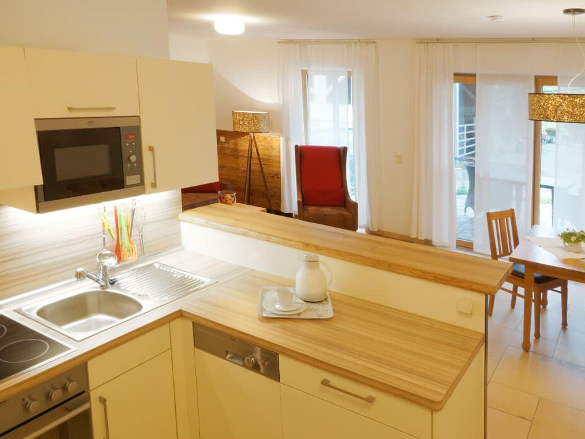 barrierefreie, ebenerdige Ferienwohnung mit großzügigem Wohn- & Essbereich und voll ausgestatteter Küche; Terrasse zur alleinigen Nutzung, separates Schlafzimmer und großzügiges Bad