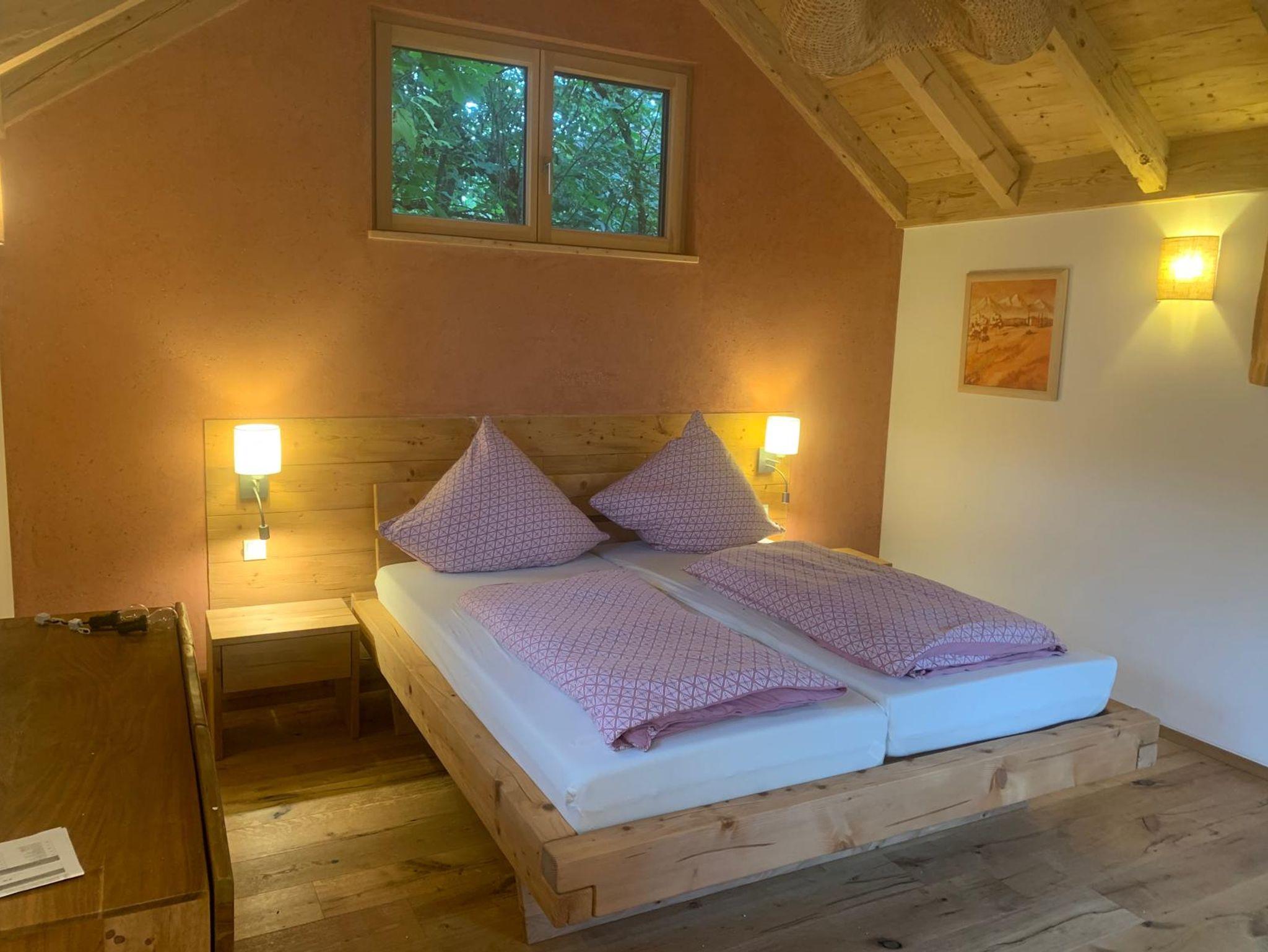 Unsere charmanten Schlafhütten aus Holz bieten den idealen Rückzugsort für Ihre Auszeit.