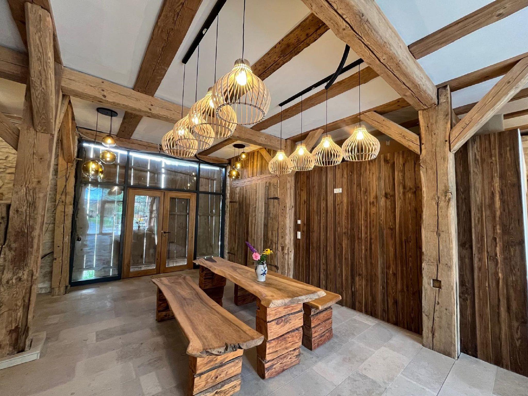 Jedes Häuschen ist mit einem großen bequemen Bett ausgestattet und verfügt über eine Kommode zum Verstauen Ihrer Kleider. Ein Schreibtisch sowie ein kleines Waschbecken gehört ebenfalls zur Ausstattung. Jede Schlafhütte verfügt zudem über eine kleine Terrasse mit gemütlichen Sitzgelegenheiten. Im schön gestalteten Garten, in dem die Ferienhäuschen stehen, befindet sich außerdem unsere historische Scheune. Hier haben Sie die Möglichkeit warm zu duschen sowie in der Küche Frühstück, Kaffee und andere Leckereien zuzubereiten. Der schön gestaltete Gemeinschaftsraum lädt zum gemütlichen Zusammensitzen und Verweilen ein. Im Außenbereich der Scheune gibt es zudem eine große Terrasse mit einem gemütlichen Lagerfeuerplatz, wo Sie den Tag entspannt ausklingen lassen und die besondere Atmosphäre genießen können.