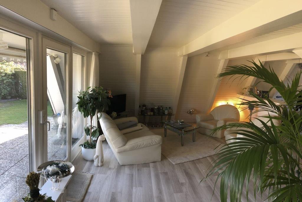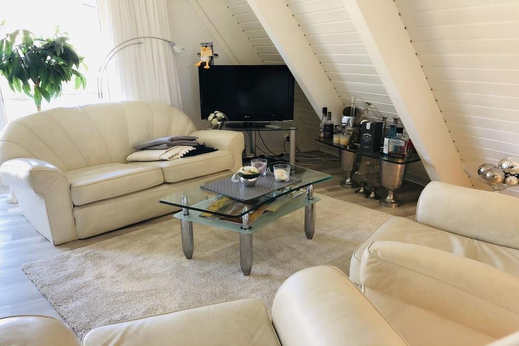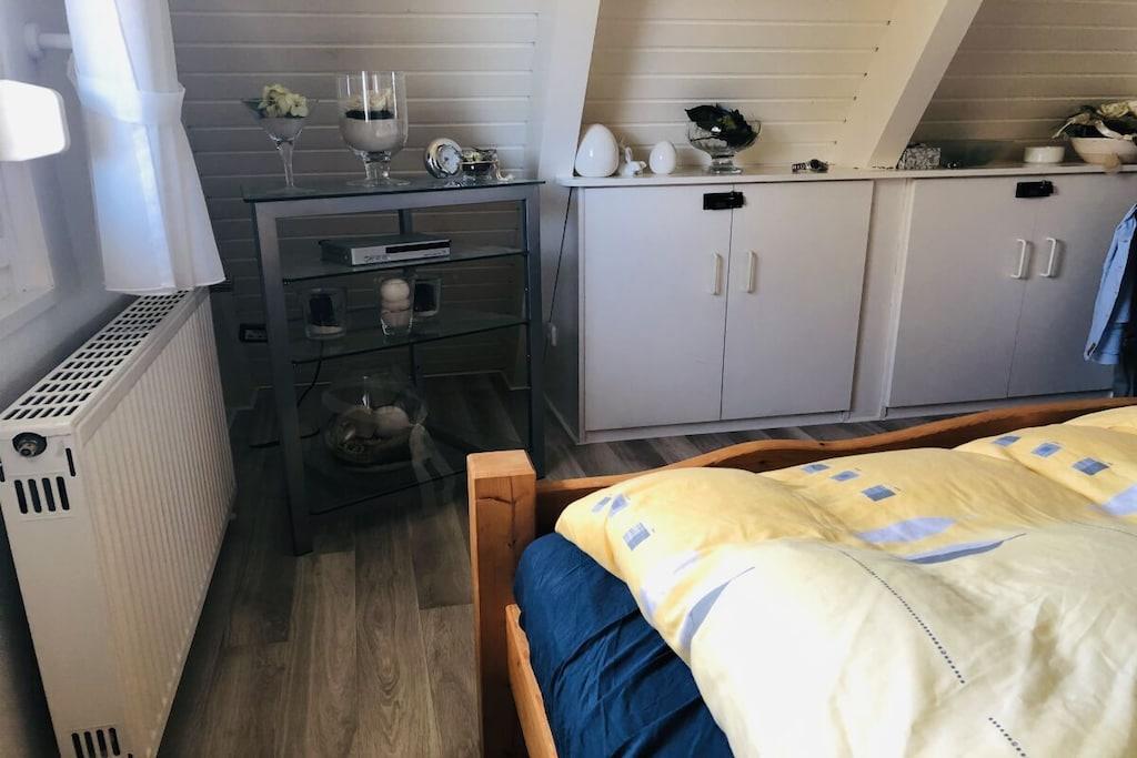 Ground floor: (hallway(Mirror, Wardrobe Coatrack), Kitchen(Spices, Kitchenette, hob, electric kettle, toaster, coffee machine, dishwasher, fridge), Living/diningroom(Armchair, Sofa, TV, dining table, DVD player, radio), bedroom(Sofa, double bed, insect screens), bathroom(Make Up Mirror, Mirror, toilet, shower, washbasin, hairdryer)) On the 1st floor: (bedroom(Armchair, Wardrobe, double bed, radio, insect screens)) Hot Water, Internet Access DSL, Vacuum Cleaner, Internet access, heating, terrace(Lawn, grill, garden furniture, awning), garden(Lawn)
