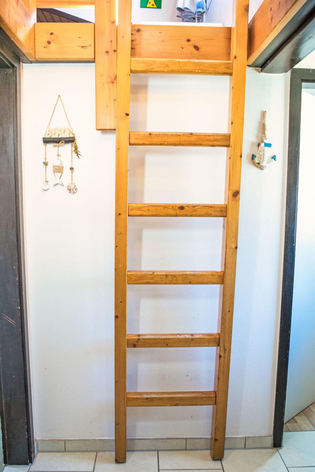 "Scout", 2-room house 42 m2 on 2 levels. Cosy furnishings: living room with panoramic window with satellite TV, radio and CD-player. Exit to the terrace. 1 room with 1 double bed and satellite TV (flat screen). Open kitchen (oven, dishwasher, 4 ceramic glass hob hotplates, toaster, kettle, microwave, electric coffee machine) with dining table. Shower/WC. Heating. Upper floor: (ladder) open gallery with sloping ceilings with 2 beds. Facilities: children's high chair, baby cot. Please note: non-smokers only. Maximum 2 pets/ dogs allowed. Smoke alarm. Instead of an enclosed bedroom, some sleeping areas are located in an open-plan area (gallery, alcove, etc.). Bookings accepted for holiday purposes only.