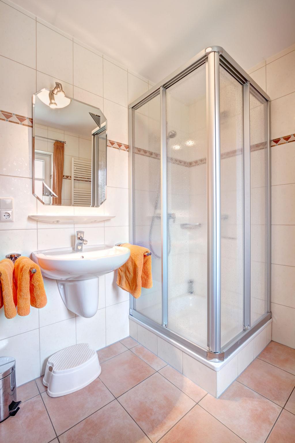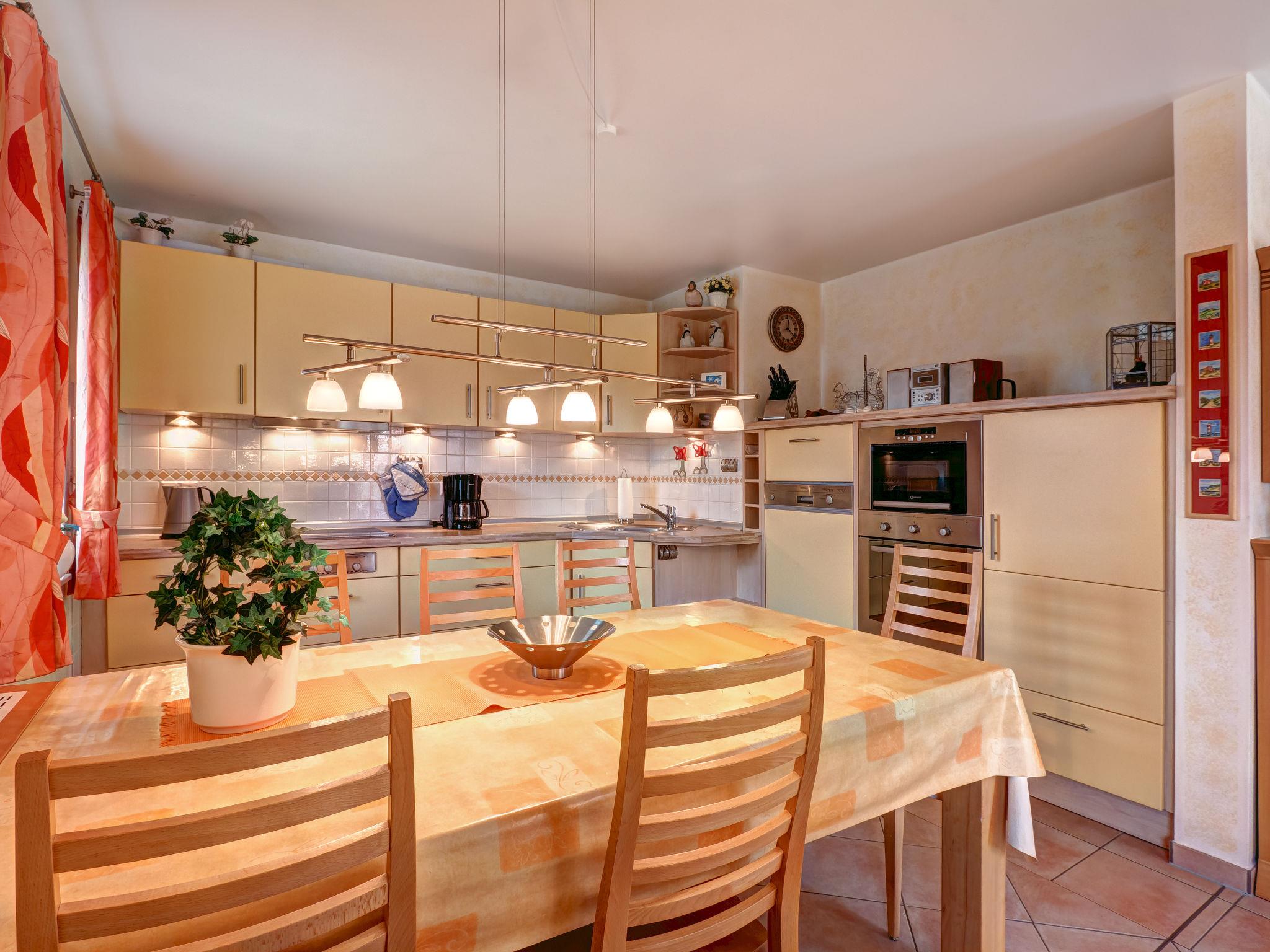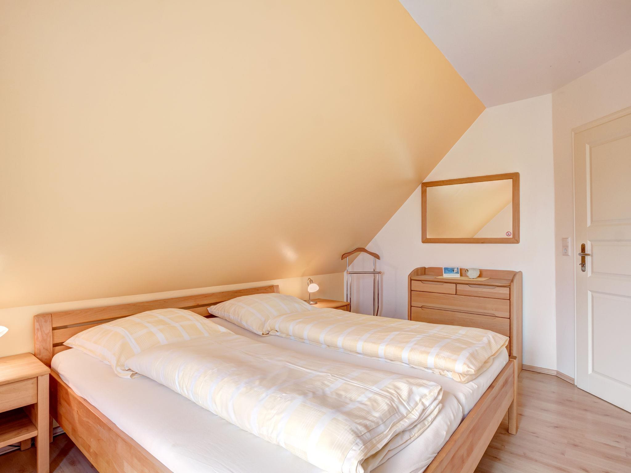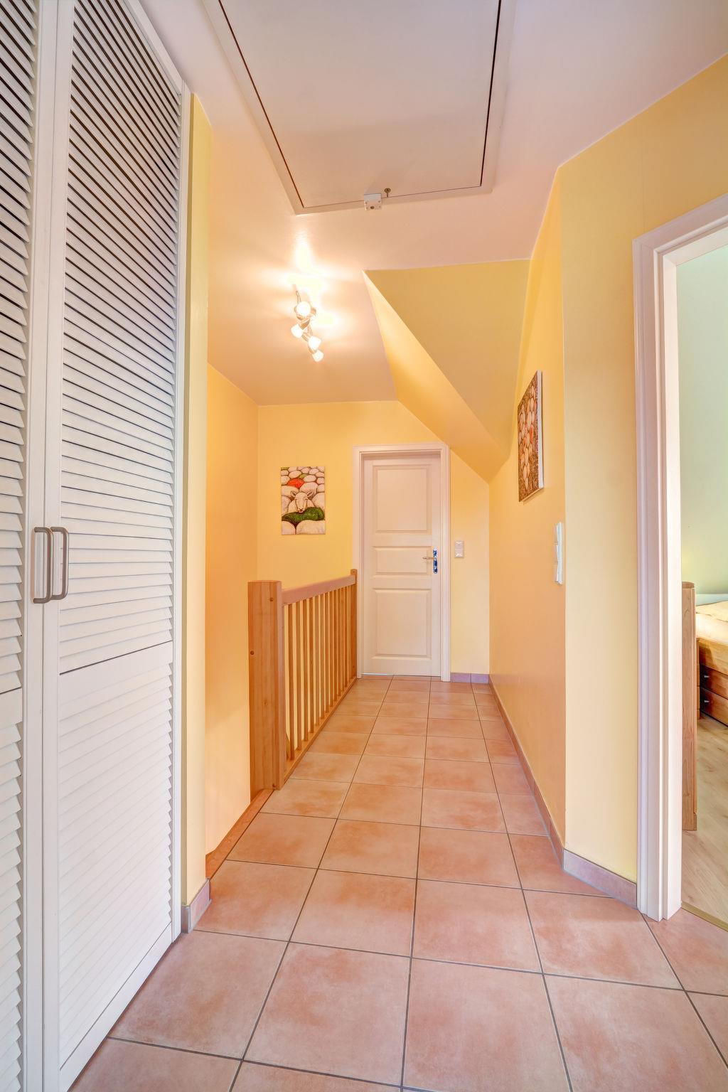 "Katamaran II", 4-room semi-detached house 90 m2 on 2 levels. Cosy furnishings: living room with cable TV and radio. Exit to the terrace. Open kitchen (oven, dishwasher, 4 ceramic glass hob hotplates, electric coffee machine) with dining table. Shower/WC, Sauna. Heating. Upper floor: with sloping ceilings, 2 rooms, each room with 1 double bed. With sloping ceilings, 1 room with 1 bed and 1 x 1 bunk beds. Bath/shower/WC. Terrace furniture. Facilities: children's high chair, baby cot. Internet (WiFi, free). Please note: non-smokers only. Smoke alarm. Bookings accepted for holiday purposes only.