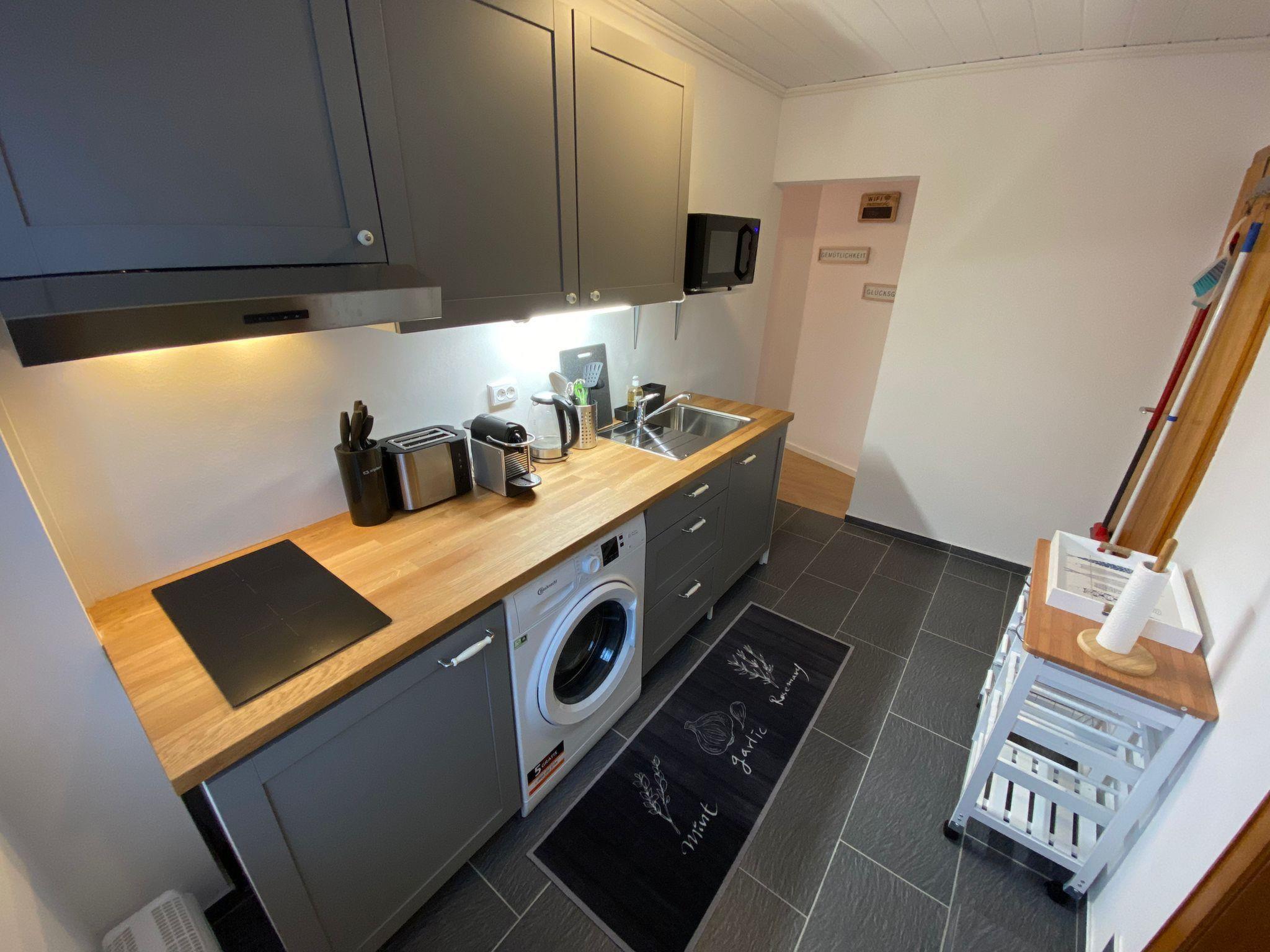 The interior of the flat has been carefully selected to optimise your relaxation time. You can spend relaxing evenings in the cosy living room with dining table, pull-out couch, TV and music system. The kitchen leaves nothing to be desired with a Nespresso capsule machine, a kettle and a Sodastream. A unique highlight is the bedroom with a comfortable queen-size double bed and an integrated infrared cabin, which ensures soothing moments. Free Wi-Fi rounds off the high-quality facilities.