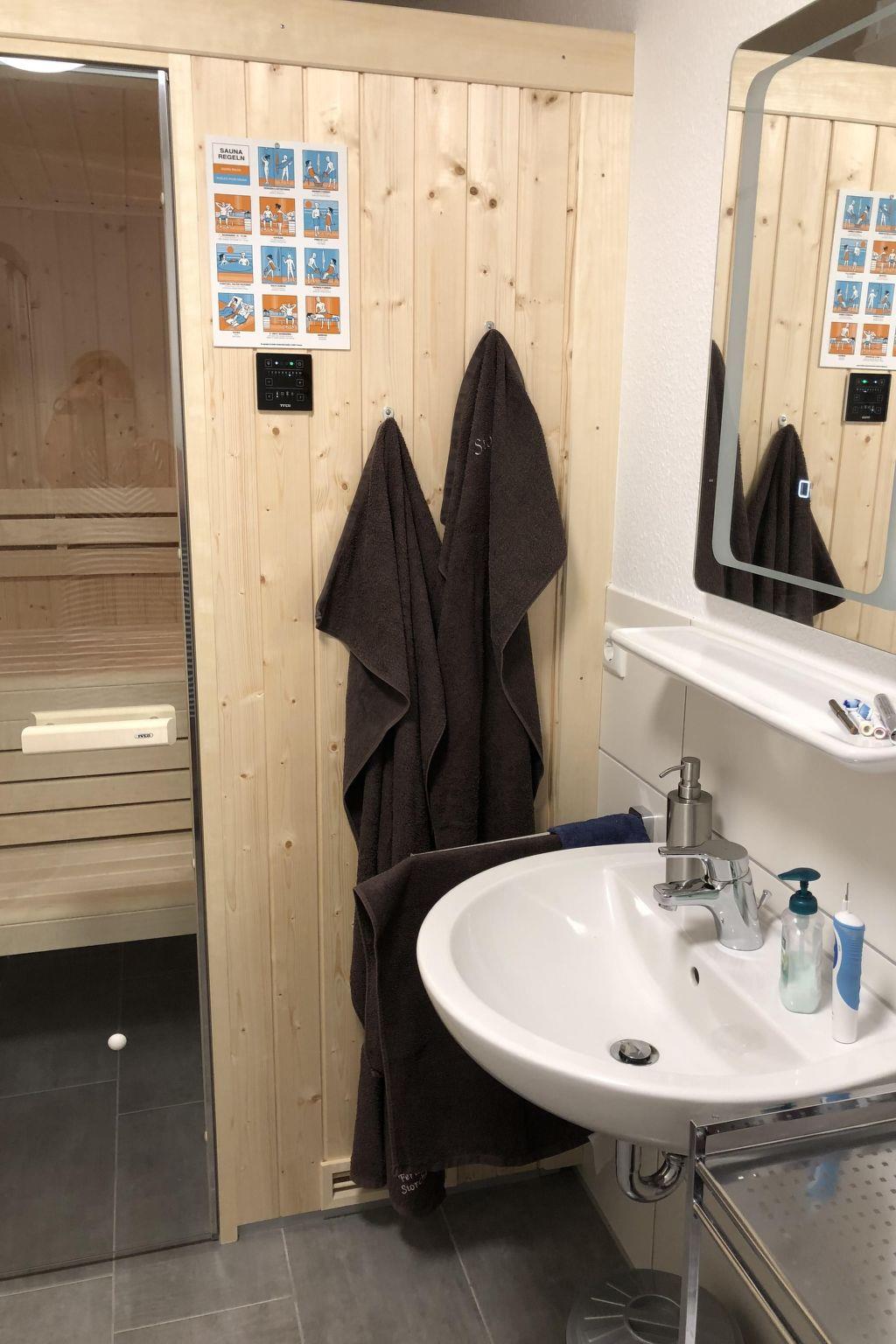Sauna: works with 1€ coins (coin-operated machine, 1€ = 30 min)