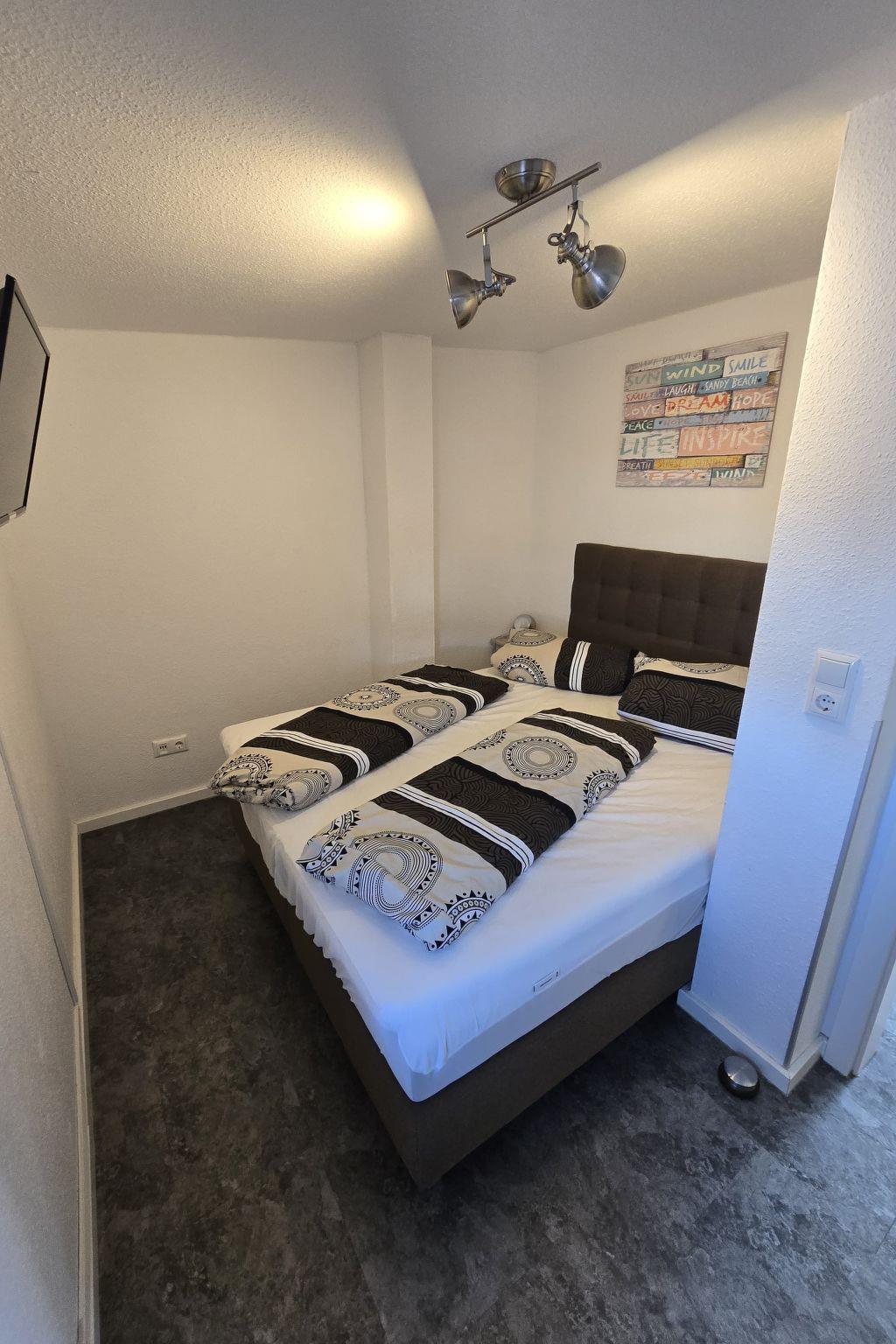 The terraced house Wattwurm has 2 floors. On the lower floor there is an open-plan living/dining area with a sofa and an armchair for relaxing, a large flat-screen TV, a wood-burning stove for cosy warmth, a fully equipped kitchen (coffee machine, kettle, toaster, dishwasher, oven, etc.), a guest WC with washing machine and tumble dryer, a small storage room and on the upper floor a guest WC with washing machine and tumble dryer. On the upper floor there is a bedroom (box spring bed 180 x 200) with a wonderful balcony and view of the dyke and a children's room (box spring bed 160 x 200), in the bedroom and guest room there is a flat screen TV), a bathroom with its own sauna. After a sauna session, enjoy the peace and quiet and the view across fields and meadows to the dyke. There is also a barbecue (on request), garden furniture and some fly screens on the windows and doors.