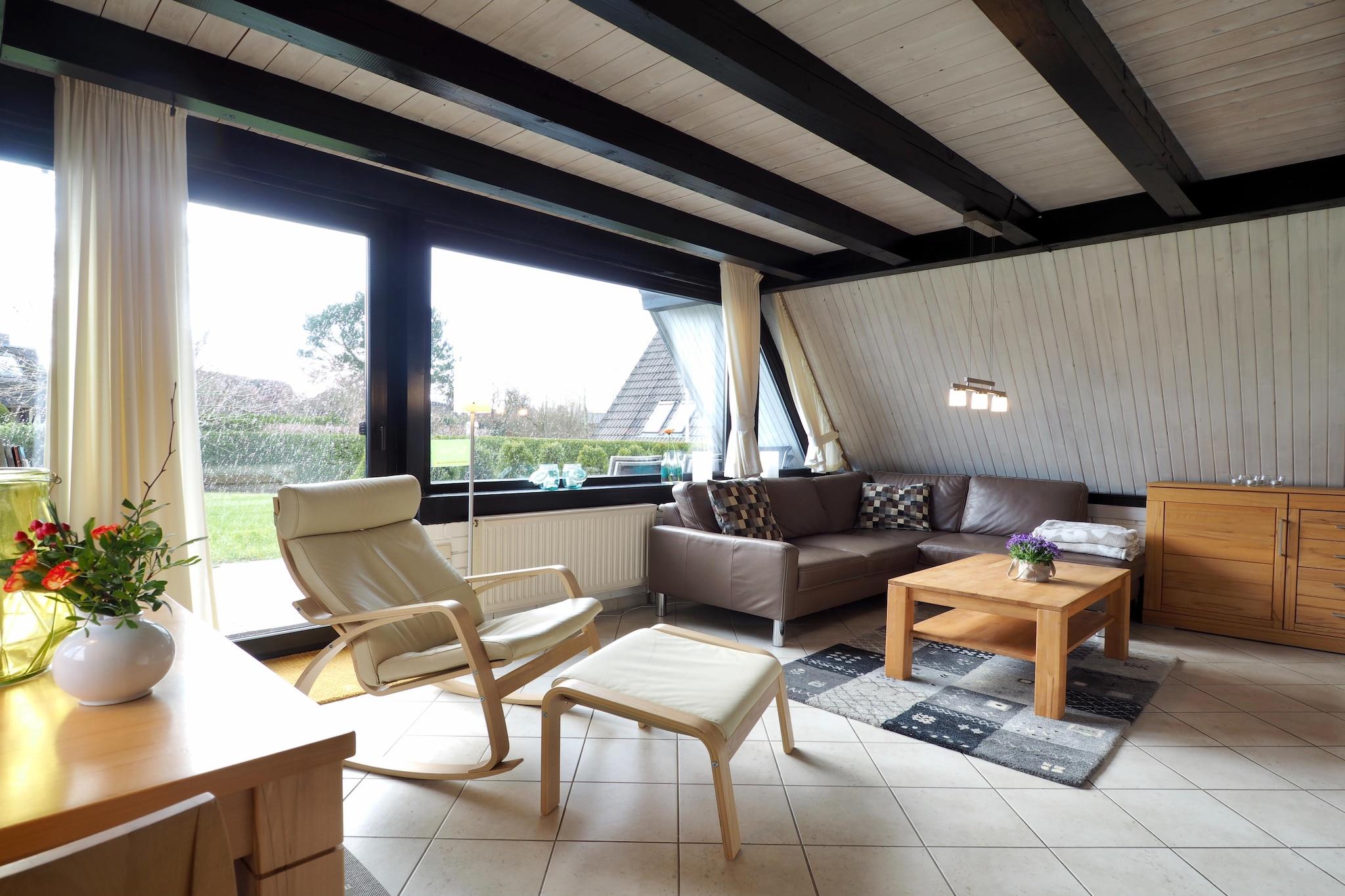 Koselig takhus med egen badstuhytte! Huset har en vakker, romslig hage med terrasse, grill og lekeplass. Du bor i et rolig område, kun 250 meter bak diket i Burhave. Den populære badebyen byr på mye variasjon for unge og gamle gjester: badeglede selv ved lavvann i Nordsjølagunen, turer i søle eller sykkelturer på det velutviklede sykkelveinettet. Aktiviteter i nærheten: For aktive syklister er det et godt utbygd nettverk av sykkelstier i Butjadingen-regionen. 250 km inviterer deg til å utforske landet og dets folk på sykkel. Et besøk til lekebur Burhave anbefales for barn. På solrike dager byr Nordsjølagunen på variasjon og badegøy Ikke egnet for bevegelseshemmede