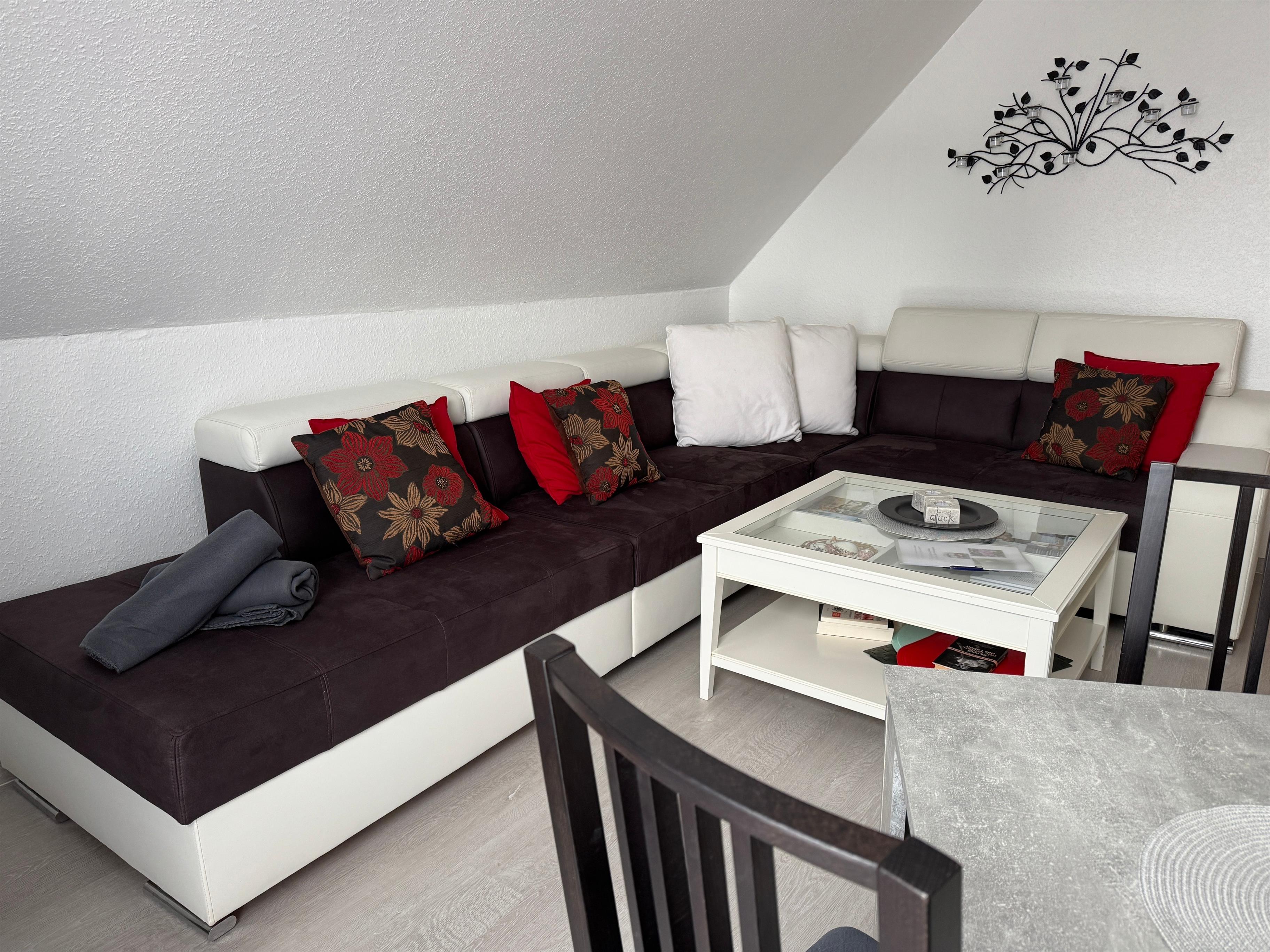 In der 70 qm großen, renovierten Wohnung, die sich im 1.OG befindet, finden ganz bequem 2-4 Gäste Platz. Es besteht auch Platz, um ein mitgebrachtes Reisekinderbett zu stellen. Auch für ihr Kleinkind steht ein Hochstuhl zur Verfügung. Alle Räume sind mit Laminat ausgestattet. Die geschmackvoll modern eingerichtete Wohnung bietet eine neue moderne Küche im Landhausstil mit allen eGeräten (Wasserkocher, Backofen, Kaffeemaschine, Toaster, Geschirrspüler, Mikrowelle) die man braucht. Wohnzimmer und beide Schlafzimmer sind mit Smart-TV ausgestattet. Erholung finden sie auch auf der eigenen Terrasse mit Gartenmöbel und Sonnenschirm mit angrenzendem kleinen Garten, der umsäumt ist mit teilweise einer Hecke und Zaun. Ideal für Ihren Hund, der gegen Gebühr mitdarf. Ein kleiner Grill steht ihnen ebenso zur Verfügung. Beide Schlafzimmer verfügen über ein Doppelbett (160x200cm). Die Wohnung bietet zusätzlich einen großen Flur im EG für z.B. das Abstellen eines Kinderwagens o.ä. und eine eigene Waschmaschine, so haben sie keinen Stress und können ihre Wäsche ganz einfach und schnell kostenlos waschen. Bügeleisen, Bügelbrett und Wäscheständer vorhanden. An den Fenstern sind Fliegengitter und Außenrollladen. Einkaufsmöglichkeiten sowie Restaurants sind fußläufig erreichbar. WLAN und ein PKW-Parkplatz direkt am Haus stehen unseren Gästen kostenfrei zur Verfügung. Bettwäsche und Handtuchset kann gegen Gebühr gebucht werden. Die nahegelegene Spielscheune bietet auch tolle Möglichkeiten sich bei nicht so gutem Wetter zu beschäftigen oder einfach problemlos in der Wohnung verbleiben und damit es nicht langweilig wird, liegen Gesellschaftsspiele und Bücher bereit. Der Strand und die Nordseelagune (bekannt in der man schwimmen kann auch wenn gerade Ebbe ist) sind einfach und schnell zu erreichen. Zu Fuß erreichen Sie den Ortskern mit seinen Einkaufsmöglichkeiten, ebenso wie den Strand mit seinen Freizeitangeboten für große und kleine Leute in wenigen Minuten. Für unsere vierbeinigen Gäste befinden sich zwei schöne Hundewiesen direkt in der Nähe. Eine ist 300 m entfernt und die zweite 900 m direkt hinterm Deich.