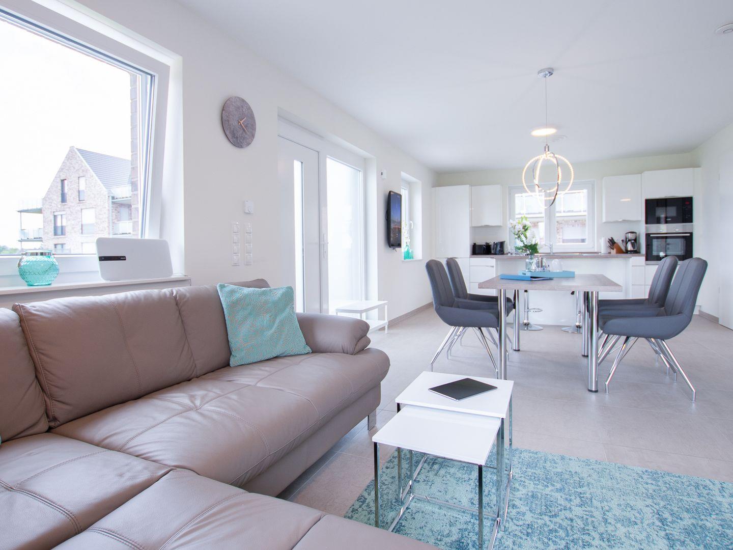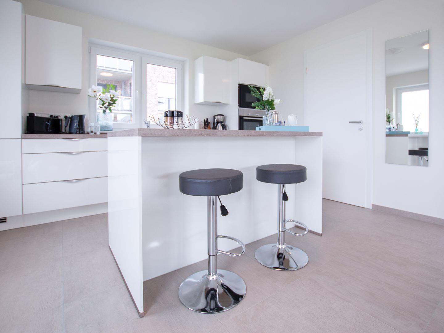 Die voll ausgestattete Küche lädt zum gemeinsamen Kochen ein, während das geräumige Wohnzimmer für gemütliche Abende mit Ihren Lieben sorgt.