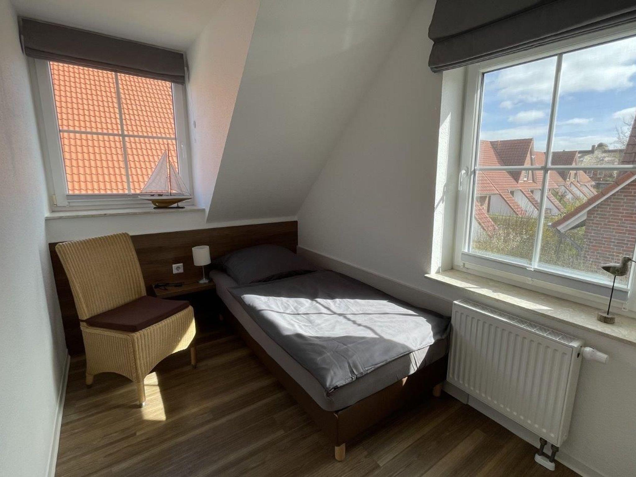 Schlafraum 2 mit Einzelbett und Kleiderschrank.