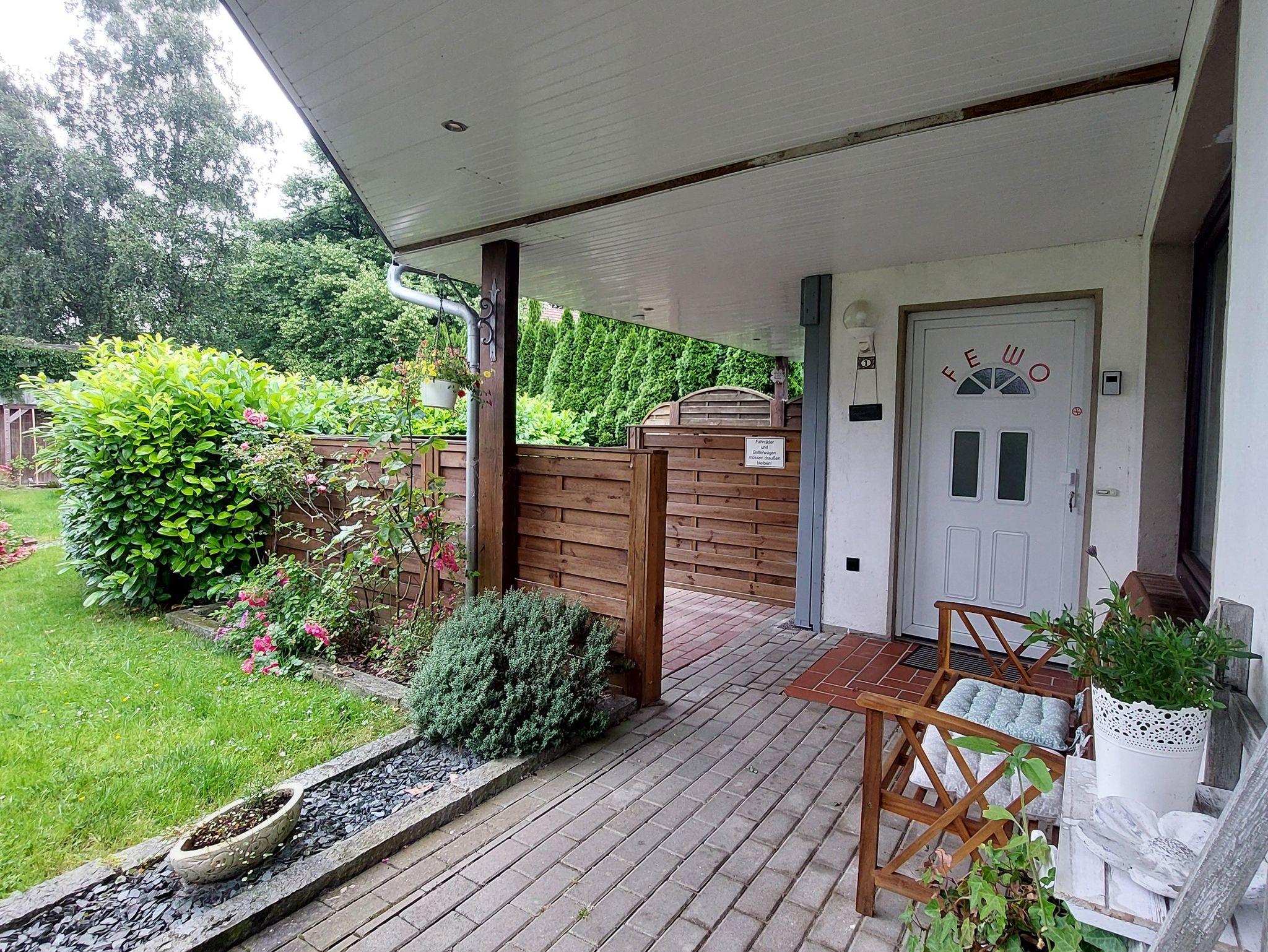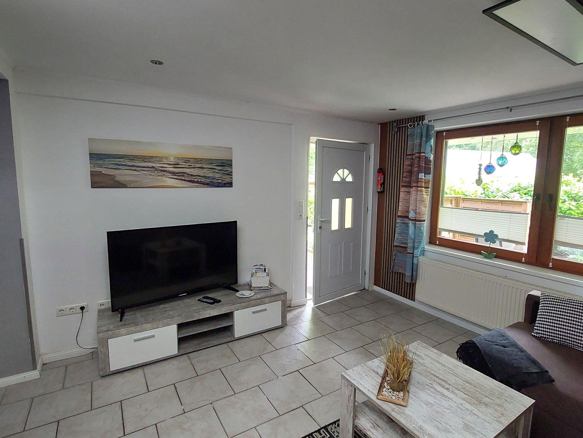 Die gemütliche und helle Ferienwohnung 1 ist ebenerdig, mit einem gemütlichen Wohn-, Kochbereich, mit Wohnecke, TV, Essecke und einer vollausgestatteten Küchenzeile (mit Geschirrspüler, Kühlschrank, Backofen, Herd, Kaffee -und Kaffeepadmaschine, Wasserkocher und Toaster). Ein Doppelzimmer und ein zusätzliches Zweibettzimmer mit einem Etagenbett laden zu einem erholsamen Schlaf in Ihrem Urlaub ein. Ein Bad mit Fön, Dusche, WC und Waschtisch steht Ihnen zur Verfügung. Direkt vor dem Eingang finden Sie eine überdachte Terrasse und eine durch eine Hecke geschützte Liegewiese, wo Sie die schönen Urlaubstage genießen und ausklingen lassen können.