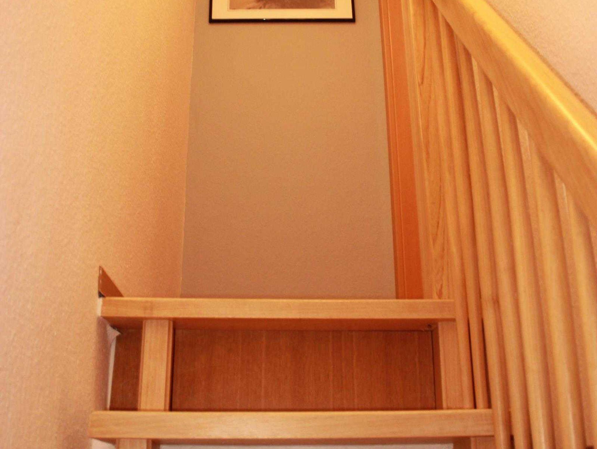Die Wohnung liegt auf zwei Ebenen, Sie erreichen sie über eine Außentreppe.