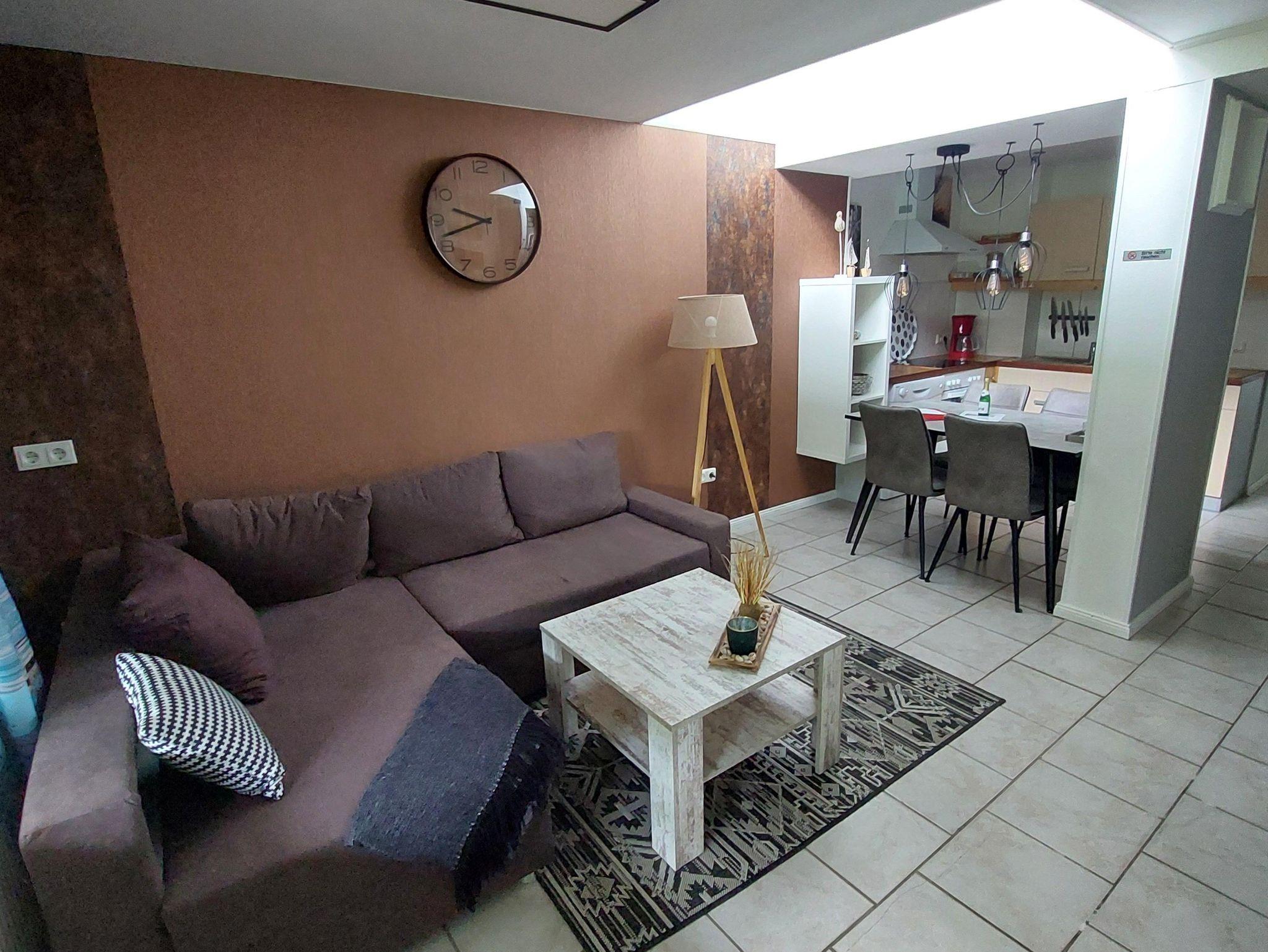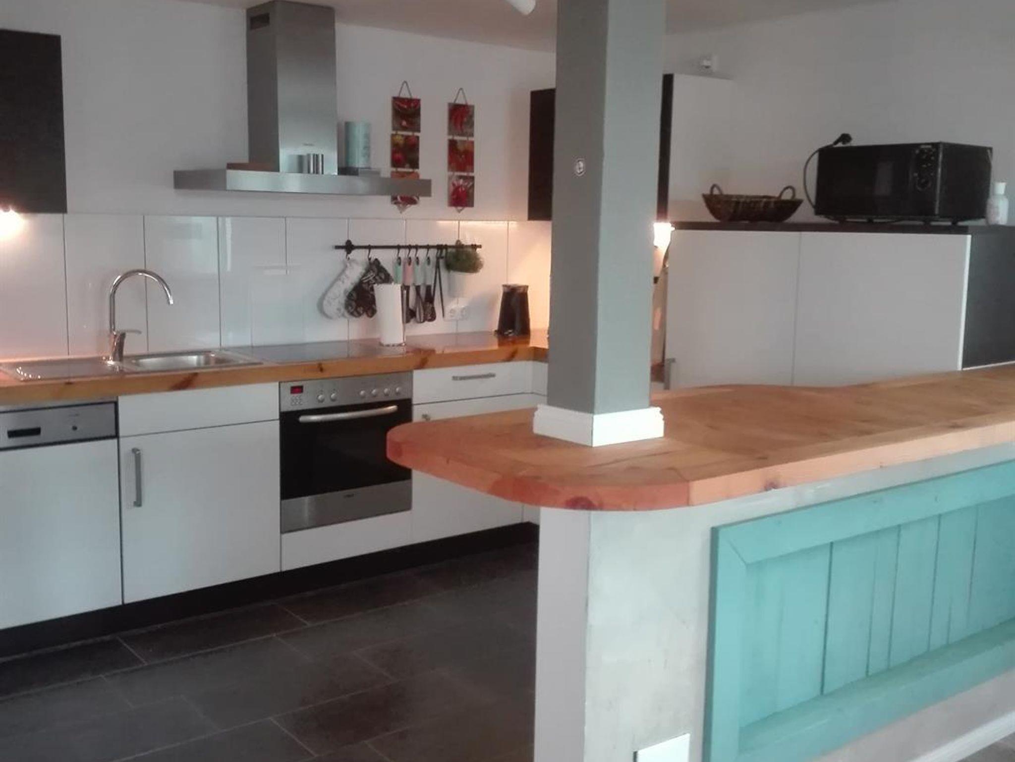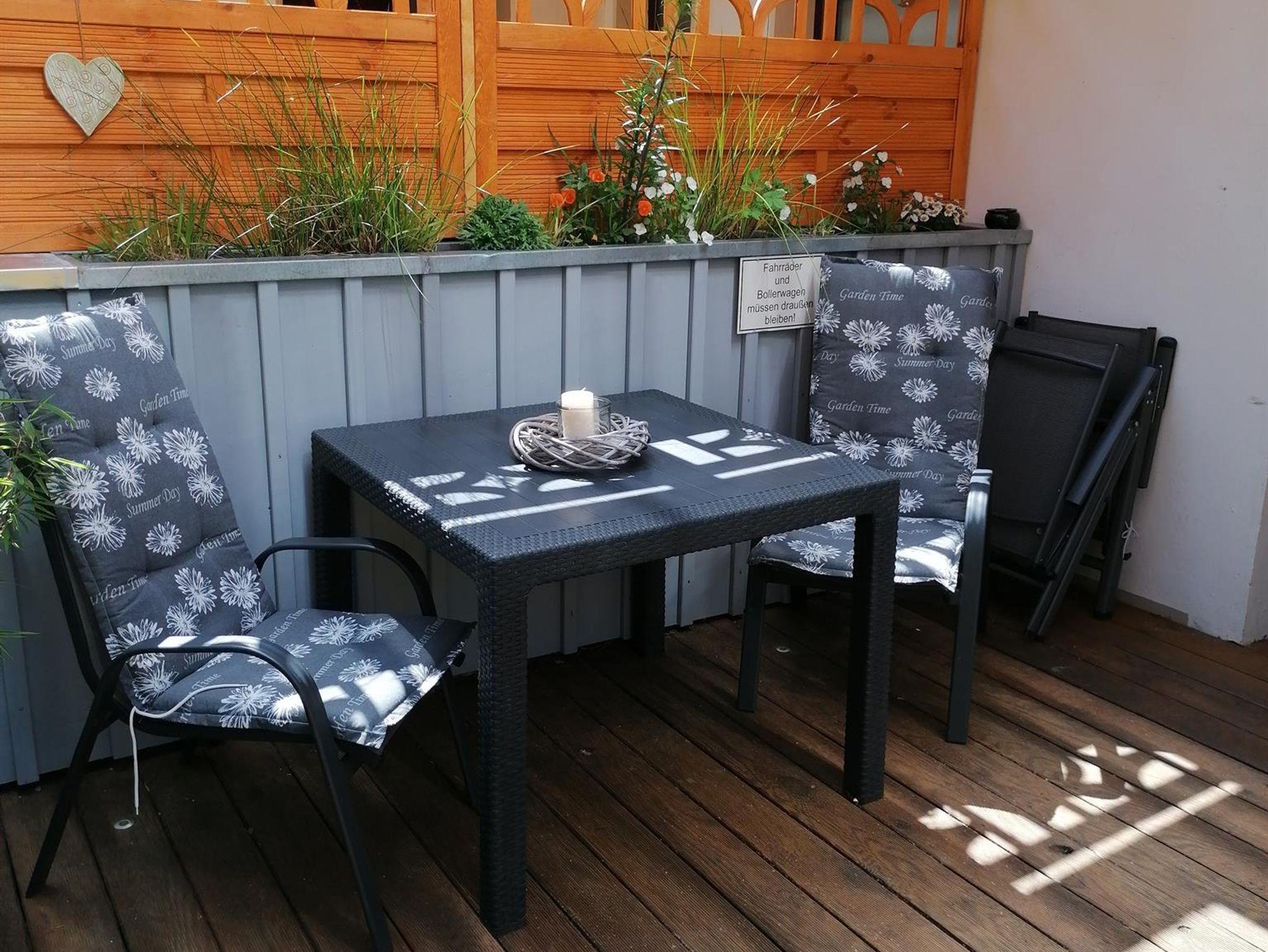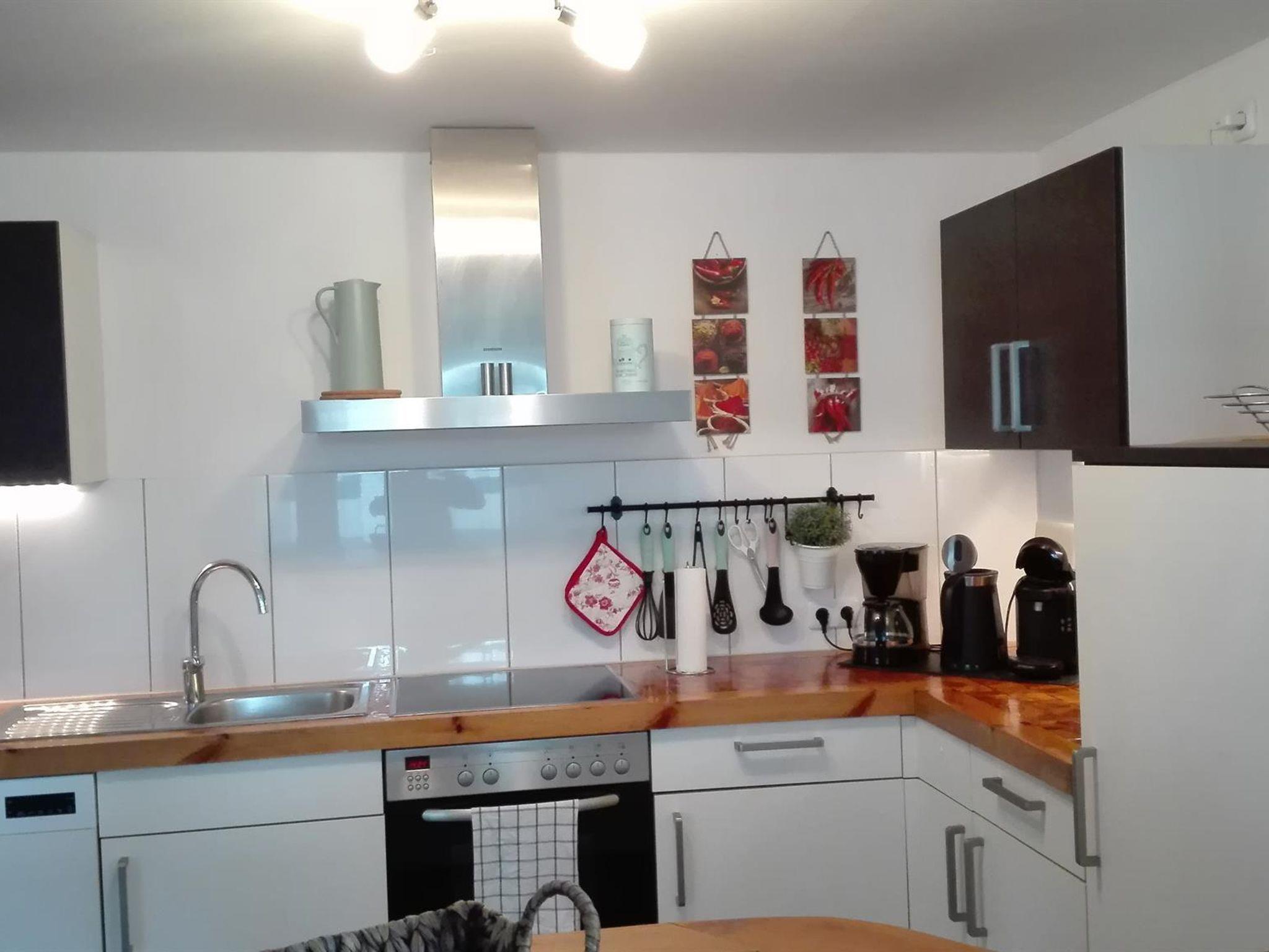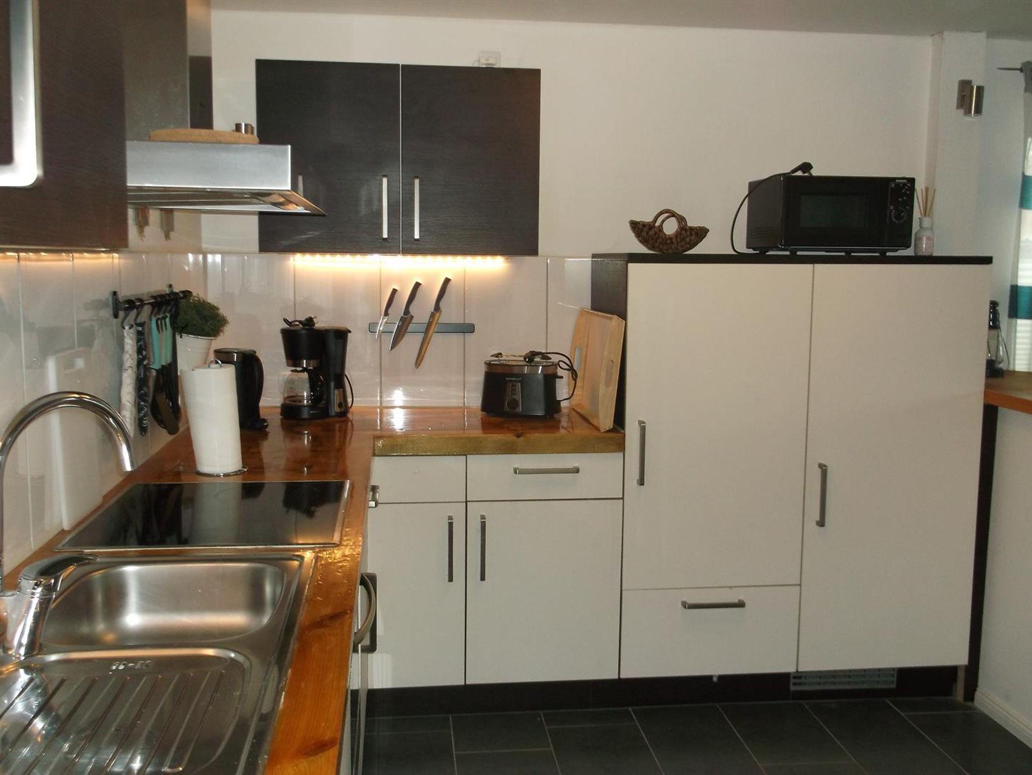 Diese sehr großzügig geschnittene Erdgeschoss-Wohnung bietet Platz für 2 Personen und einem Kleinkind bis zwei Jahre. Durch die Eingangstür betreten Sie den Wohnraum, ausgestattet mit einer sehr gemütlichen Wohnecke mit TV und HiFi-Anlage. Eine Essecke ist vorhanden. Die vollausgestattete Küchenzeile ist mit: Ceranfeld, Mikrowelle, Geschirrspüler, Backofen, Kaffee- und Kaffeepadmaschine, Wasserkocher, Toaster und weiteres mehr bestückt . Vom Flur aus kommen Sie in das Schlafzimmer mit einem Doppelbett und einem Kleiderschrank und in das Bad mit einer flachen Dusche, Waschtisch, WC und Fön. Eine überdachte Terrasse mit Terrassenmöbeln lädt zu schönen Abenden ein.