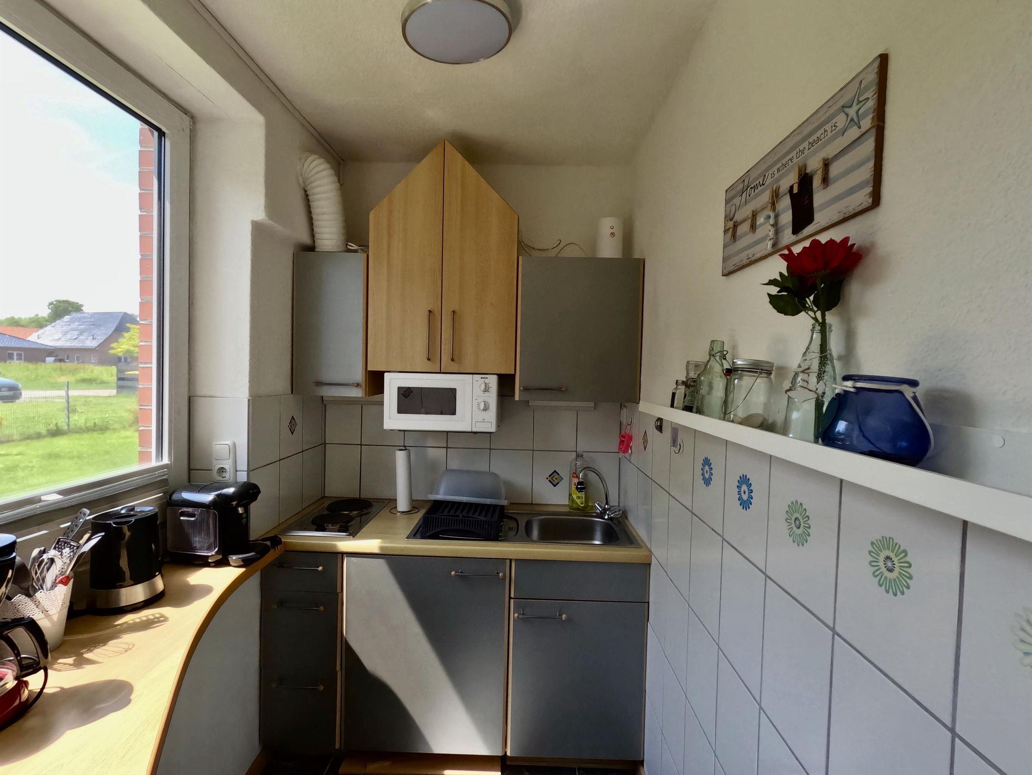 Die helle, kompakt geschnittene Küche ist funktional ausgestattet und bietet alles, was Sie für eine entspannte Selbstversorgung im Urlaub benötigen.