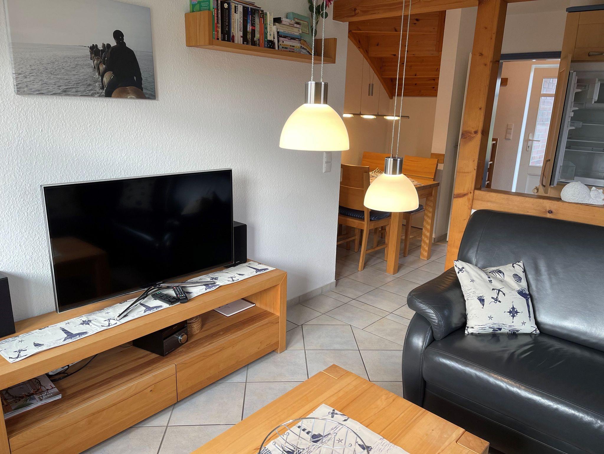Anschließend an das Wohnzimmer befindet sich eine komplett eingerichtete Küche. Auch erwartet Sie hier eine Terrasse. Genießen Sie beim Frühstücken oder Relaxen die Sonnenstrahlen und die frische Nordseeluft! Aber auch außerhalb der Hautsaison ist das Haus ein idealer Ausgangspunkt für Ihre Erkundungen an der Nordseeküste.