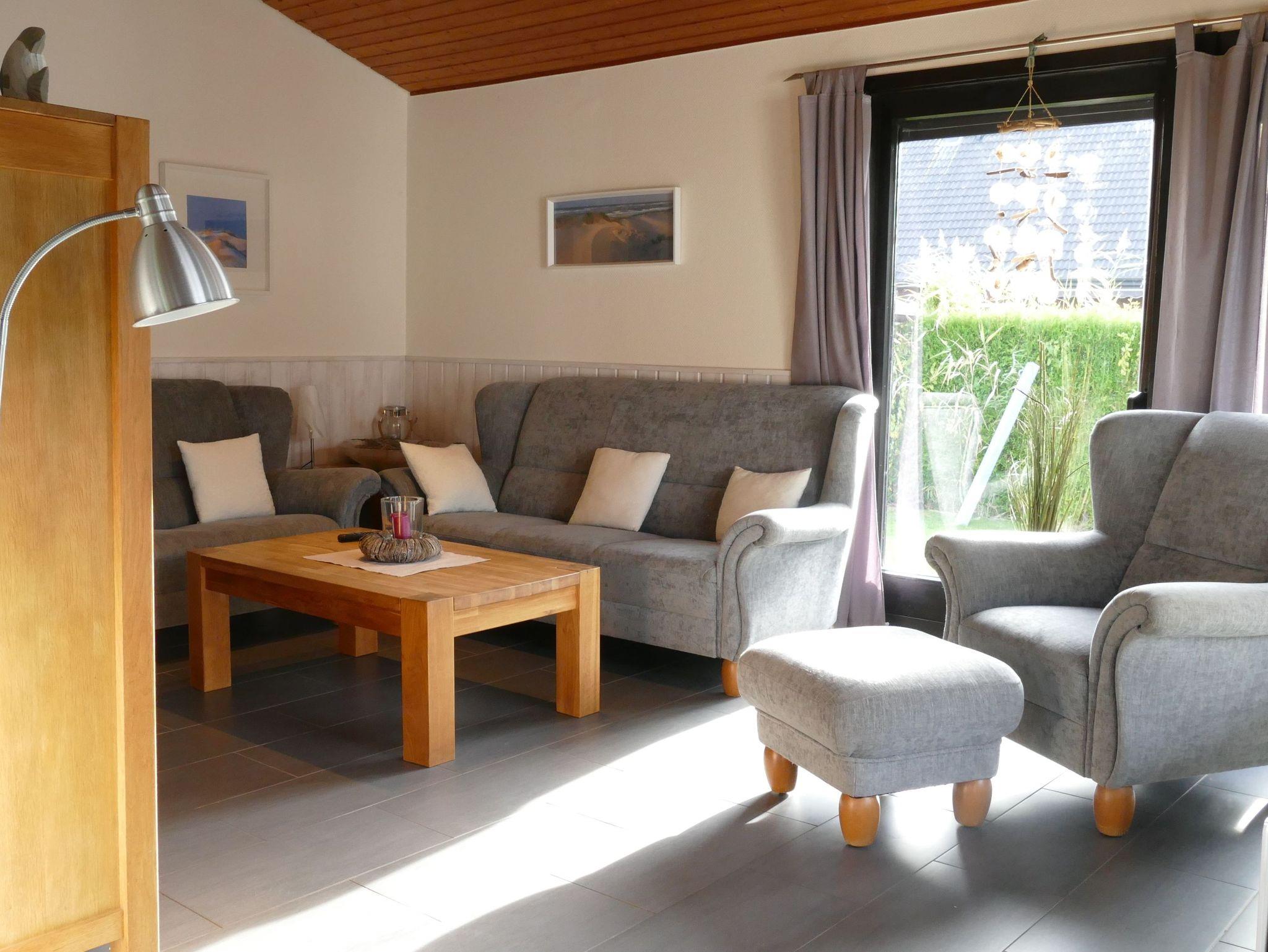 Der freistehende Ferienbungalow im Fachwerkstil bietet auf 65m² ausreichend Platz für vier Erwachsene und einem Kleinkind bis 2 Jahre. Im Wohnraum befinden sich komfortable Sitzmöglichkeiten, ein Fernseher und eine offene, vollständig ausgestattete Küche. Von hier können Sie auf Ihre eigene Sonnenterrasse treten und das herrliche Nordseewetter genießen.