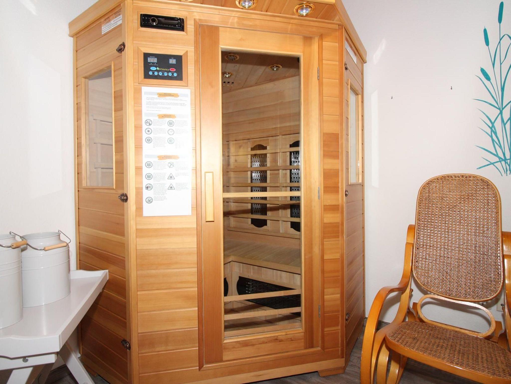 Ein besonderes Highlight ist das Wellnesszimmer im Erdgeschoss. Hier steht eine Infrarotwärmekabine für zwei