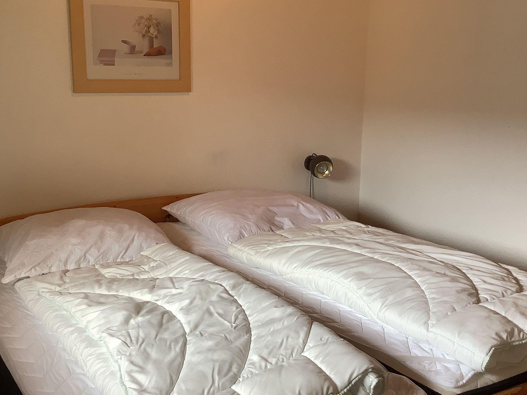 Das erste Schlafzimmer verfügt über ein Doppelbett, das zweite Schlafzimmer über drei Schlafmöglichkeiten, davon eines als Hochbett. Das Badezimmer verfügt über eine Dusche, ein WC und ein Waschbecken. Außerdem können Sie in einem kleinen Abstellraum Ihre Habseligkeiten verstauen.