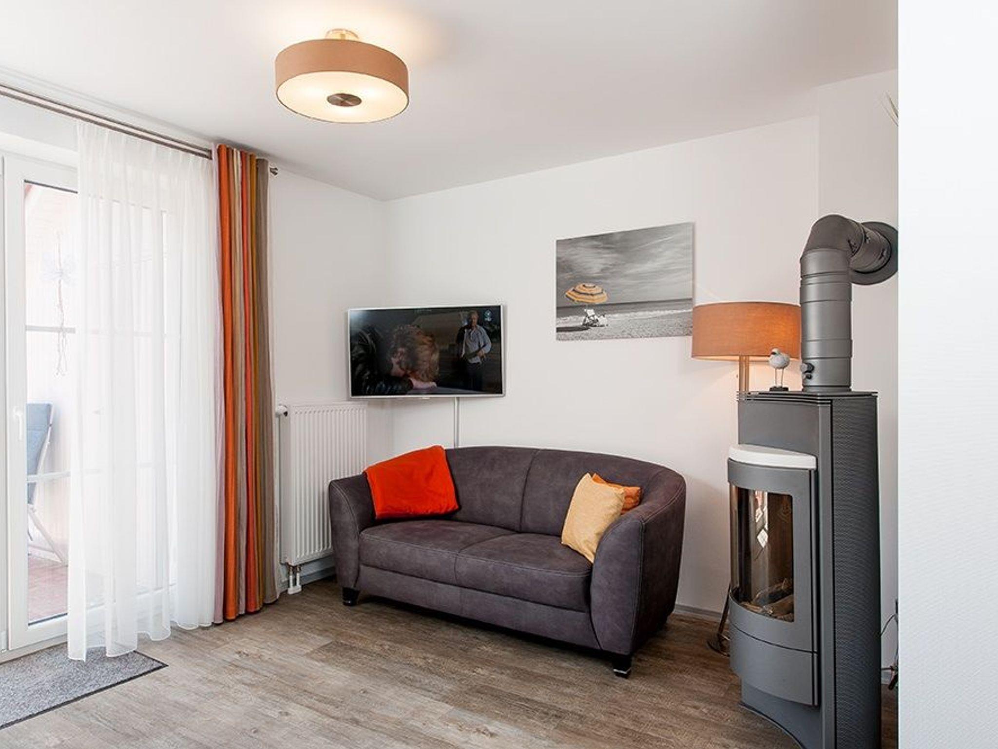 Im Wohnbereich gemütliches Sofa, Ottomane, Sessel, Essecke mit Morgensonne,Entertainment-/Info-Center 42“3D-HD-TV, Gaskamin