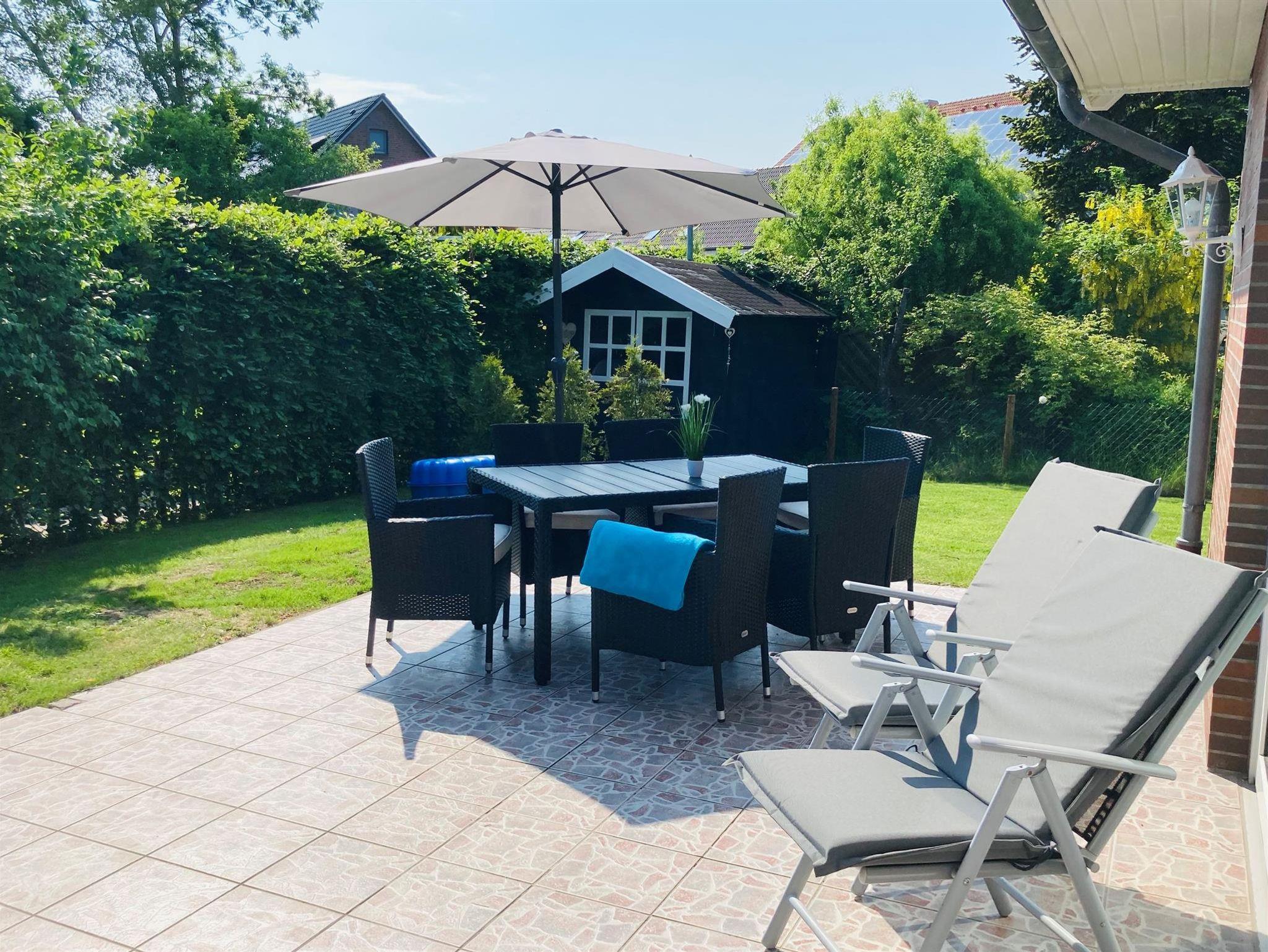 Das hell, gemütlich und familienfreundlich eingerichtete 140m² Ferienhaus NordseeZeit bietet alles was Sie im Urlaub nicht vermissen möchten. In dem großzügigen Eingangsbereich finden Sie eine Garderobe und eine Möglichkeit die Schuhe oder auch Kinderwagen abzustellen. Im Erdgeschoss erwartet Sie ein gemütliches, sehr geräumiges Wohnzimmer (TV) mit einer gemütlichen Wohnecke, mit einer Pakettausstattung und einem direkt angrenzenden Esszimmer für bis zu 6 Personen. In der offenen Küche mit vollausgestatter Einbauküche mit Backofen, Ceran-Kochfeld, Kühl- Gefrierkombination, Geschirrspüler, Waschmaschine, Küchenradio, Wasserkocher, Toaster und einer Kaffeemaschine macht auch das Kochen viel Spaß. Im Obergeschoß (kindersicher durch ein Treppenschutzgitter) befinden sich ein Doppelschlafzimmer mit Boxspringbett (1,80m breit) und Kleiderschrank, ein Doppelzimmer mit Doppelbett (1,80m breit) Kleiderschrank und ein Doppelzimmer mit Doppelbett (1,80 m breit) und Kleiderschrank. Die 3 Schlafzimmer laden zu erholsamen Schlaf ein. Im Bad finden Sie eine Badewanne, Dusche, Waschtisch, Bidet und WC. Für die Kleinen ist ein Kindertritt und ein WC-Aufsatz vorhanden. Eine Babybadewanne kann Ihnen auf Anfrage zur Verfügung gestellt werden. Eine große Terrasse mit Gartenmöbeln, Sonnenschirm und Grill ist direkt vom Wohnbereich über eine Terrassentür erreichbar. Eine Liegewiese zum Toben oder Entspannen steht Ihnen zur Verfügung, ebenso ein kleiner Privat-Spielplatz mit Schaukeln und Sandmuschel. Im abschließbaren Gartenhaus besteht die Möglichkeit die mitgebrachten oder geliehenen Fahrräder unterzustellen. W-LAN steht Ihnen kostenlos zur Verfügung.
