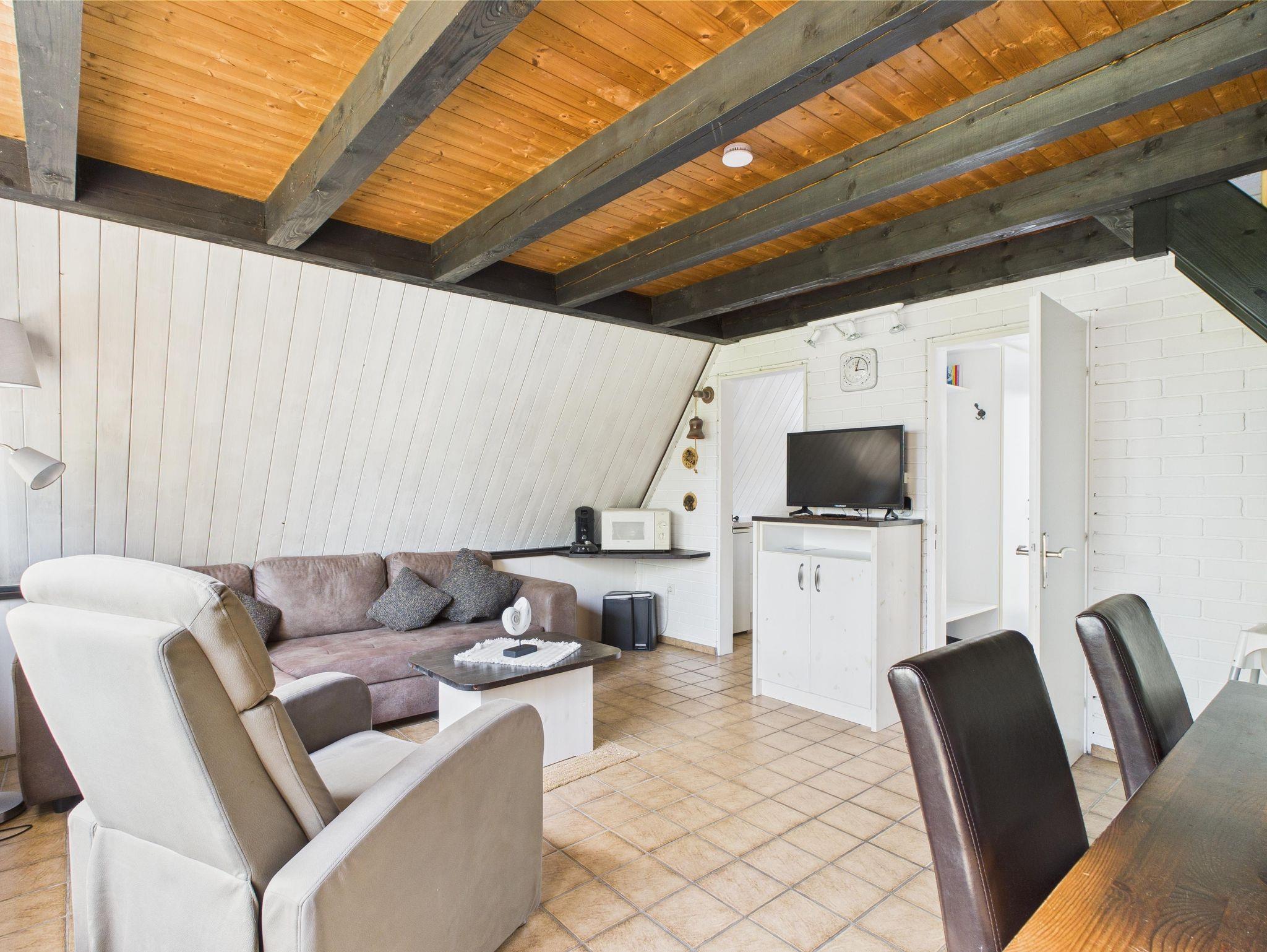 Das gemütliche Nurdachhaus verfügt im Erdgeschoss über ein Wohnzimmer mit Schlafcouch, Fernsehsessel und Essecke, SAT-TV, Küche mit Geschirrspüler, Flur mit Garderobe sowie Bad mit Dusche und WC. Über eine Raumspartreppe gelangt man in das Obergeschoss. Im Obergeschoss befinden sich 2 Schlafzimmer (1x mit Doppelbett und 1x mit 2 Einzelbetten). Kinderbett, Hochstuhl und Kinderschutzgitter für die Treppe sind vorhanden. Die Küche ist ausgestattet mit Backofen und Ceranfeld, Geschirrspüler, Kühlschrank und Gefrierfach, Toaster, Padmaschine, Kaffeemaschine und Wasserkocher. Auf der schönen Terasse stehen Ihnen Gartenmöbel, Sonnenschirm und ein Grill zur Verfügung.