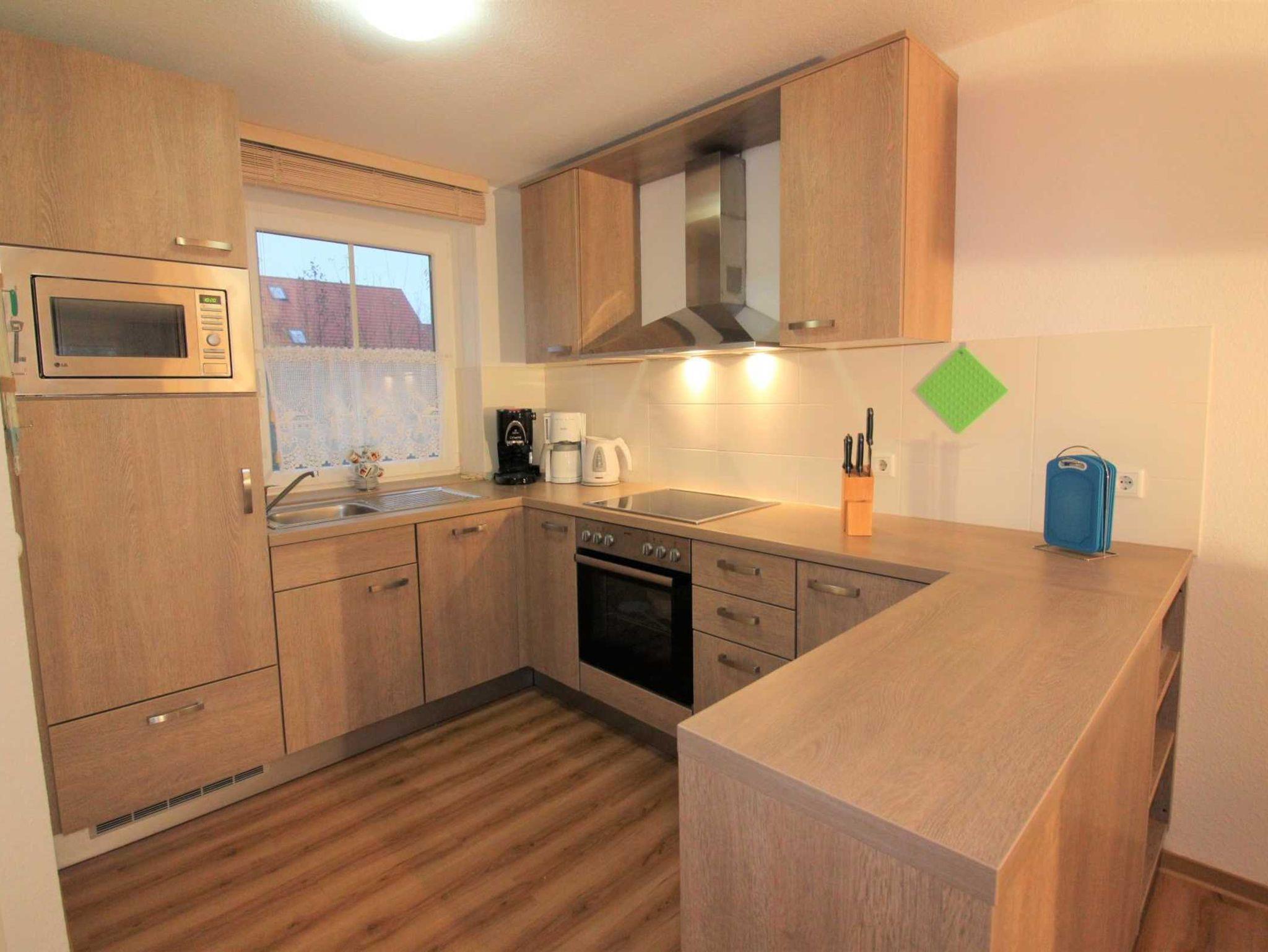 Voll ausgestatteter Küchenbereich (Spülmaschine, Mikrowelle, Kühlschrank mit Gefrierfach, Kaffeemaschine, Wasserkocher, Eierkocher und mehr) mit separatem Essplatz